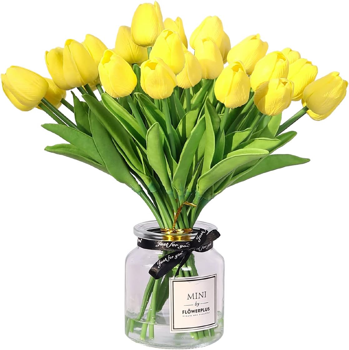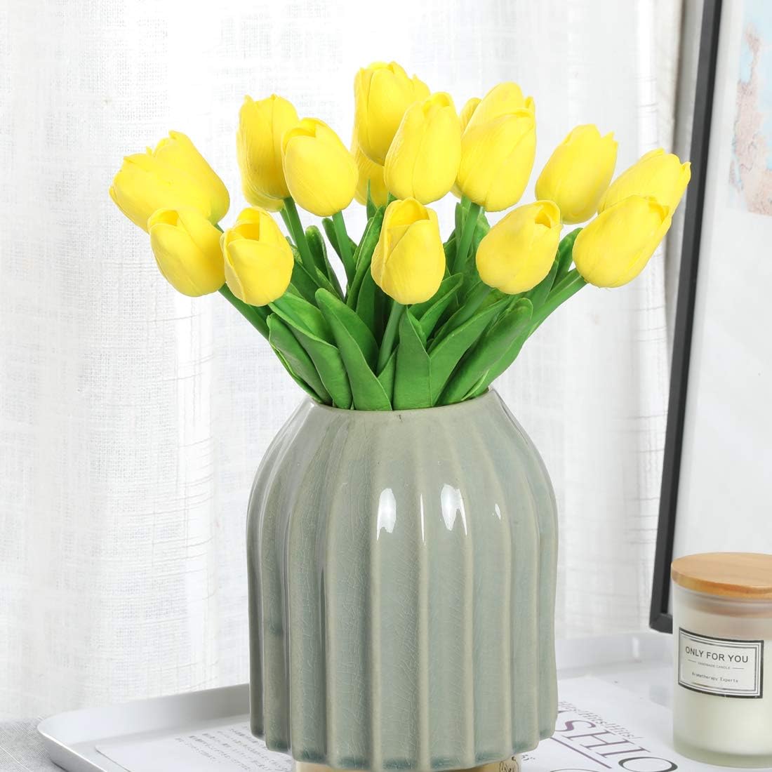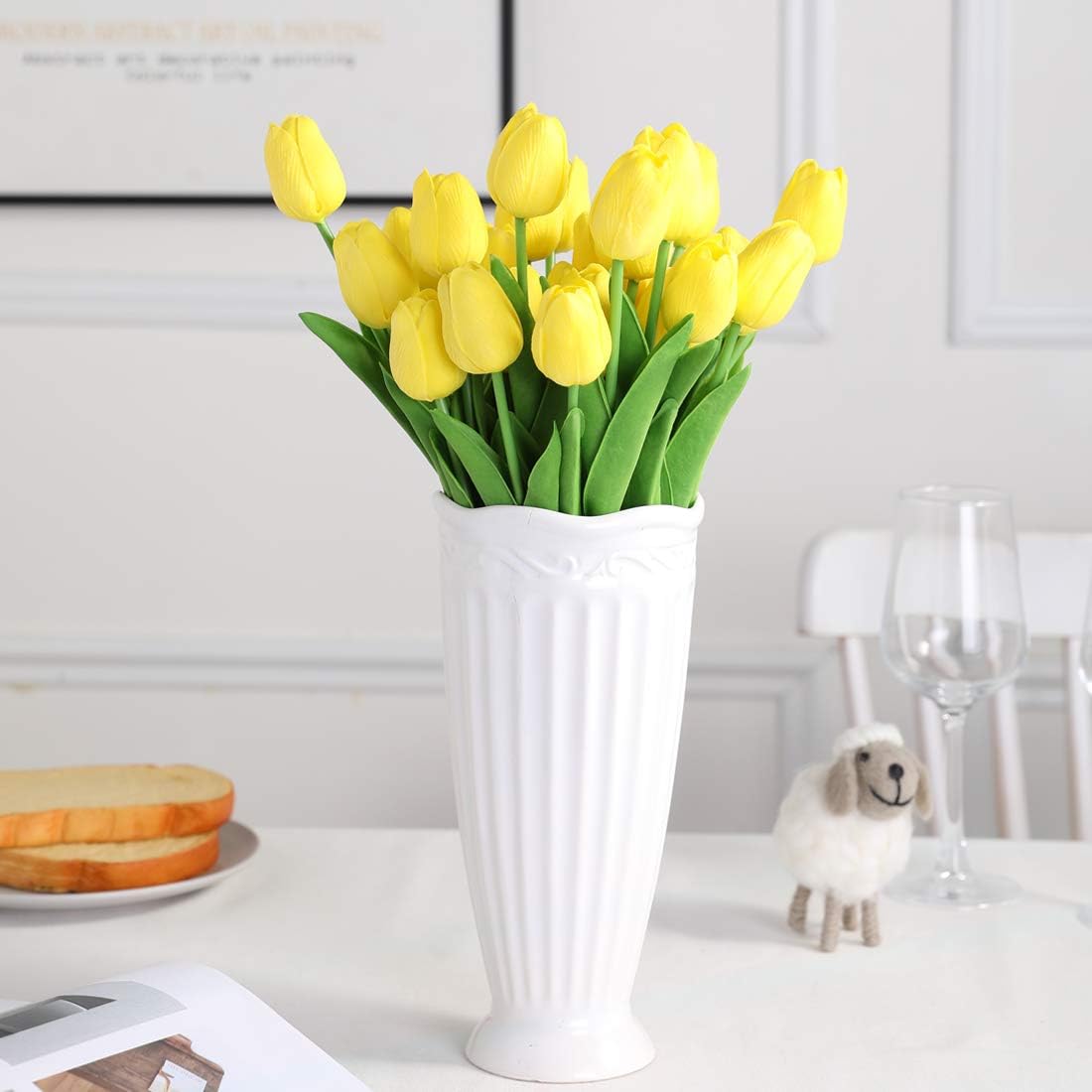 Material: PU, plastic, flower size: each flower head diameter 1.97 inches (approx. Flower height: 13.5 inches (approx. Package contents: 10 pieces and 20 pieces fake flower tulle flower, no vase included.