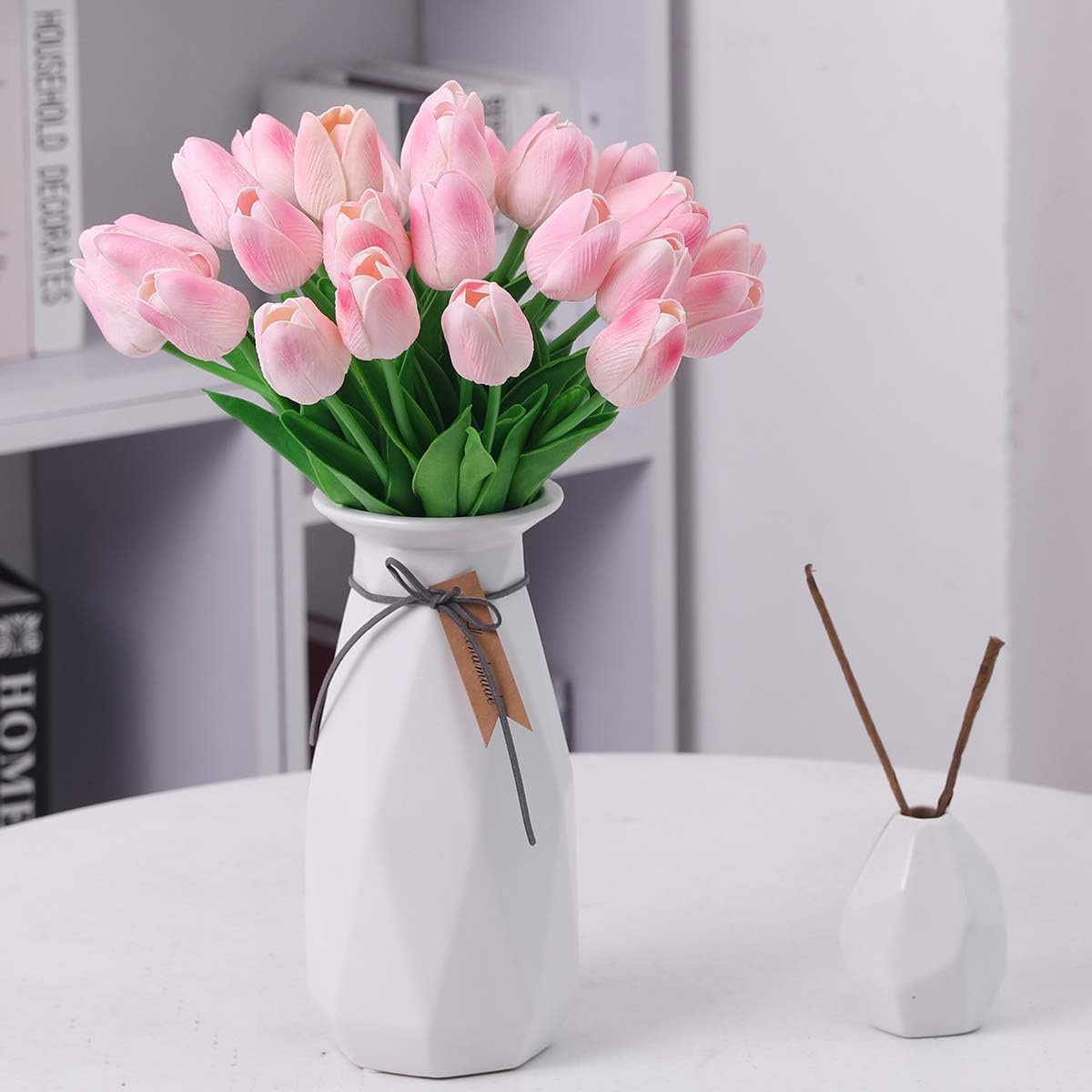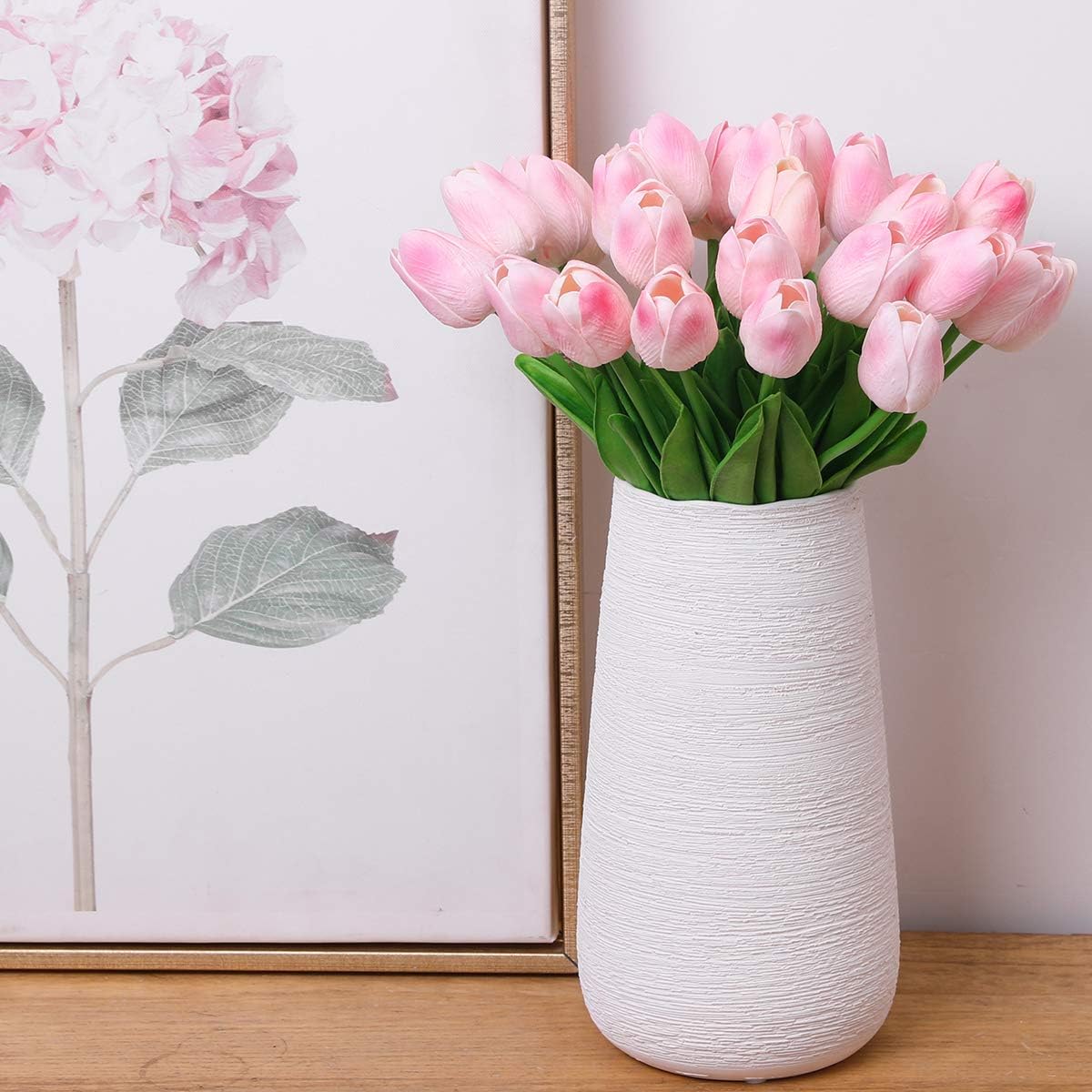 Material: PU, plastic, flower size: each flower head diameter 1.97 inches (approx. Flower height: 13.5 inches (approx. Package contents: 10 pieces and 20 pieces fake flower tulle flower, no vase included.