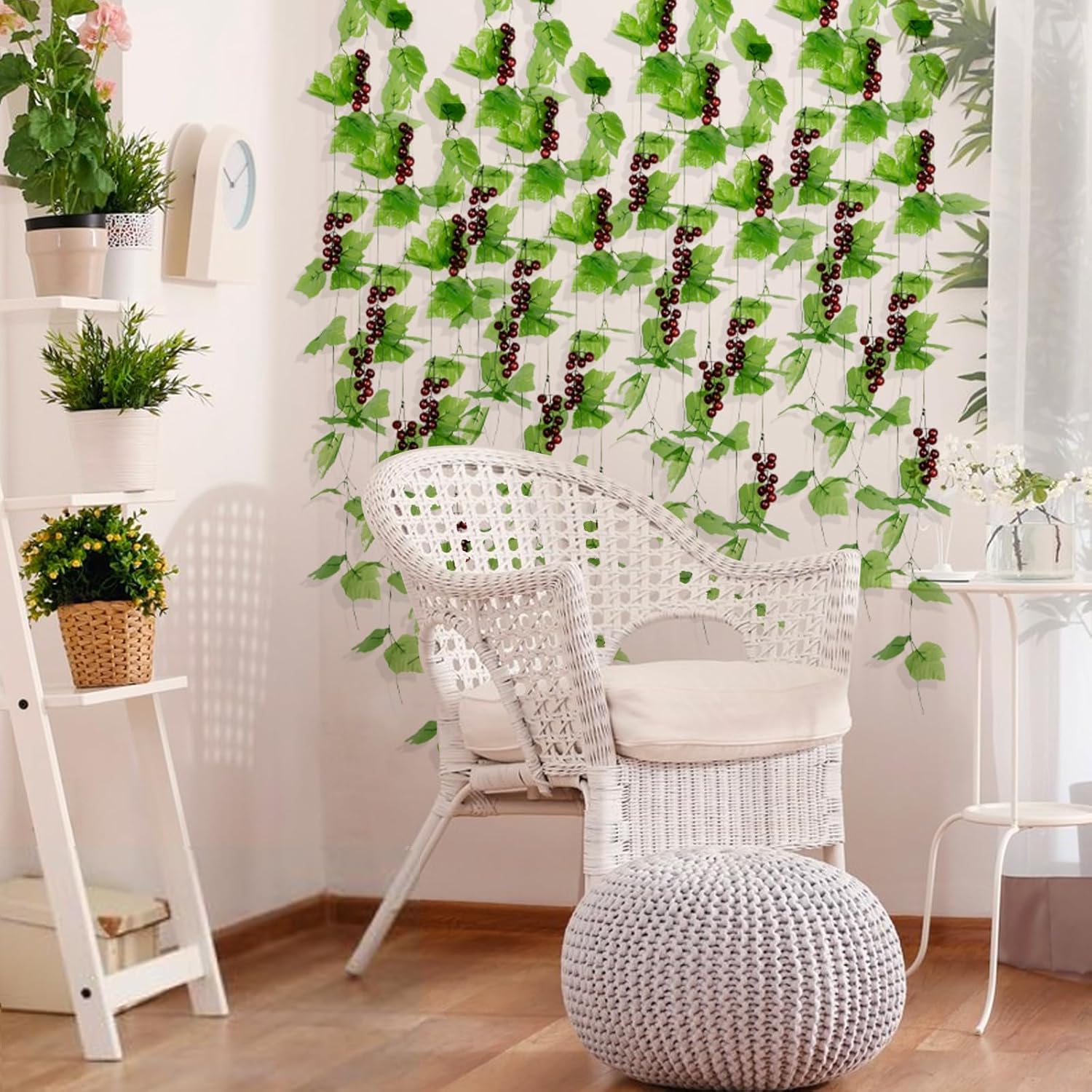 Изкуствени лози с грозде, 24 метра, изкуствено пластмасово грозде, декорация, изкуствени лози за дома, градината, сватбата, партито, магазина, декорация за дома, пакет от 10