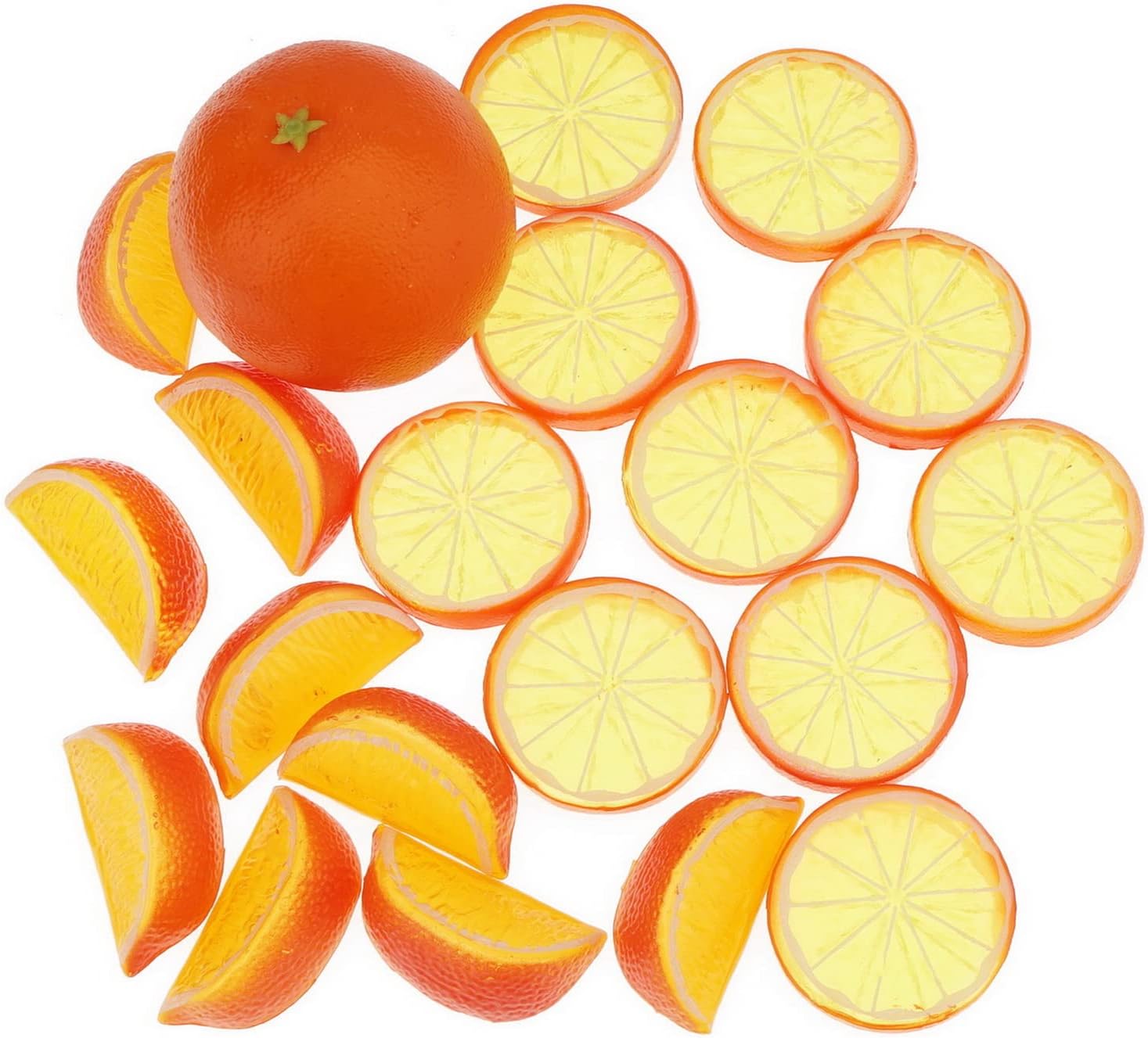 Woration 19 части изкуствени портокали и резени блокове симулация на плодове модел реалистичен портокал декорация за дома фалшив модел на плод за парти кухня сватба орнамент