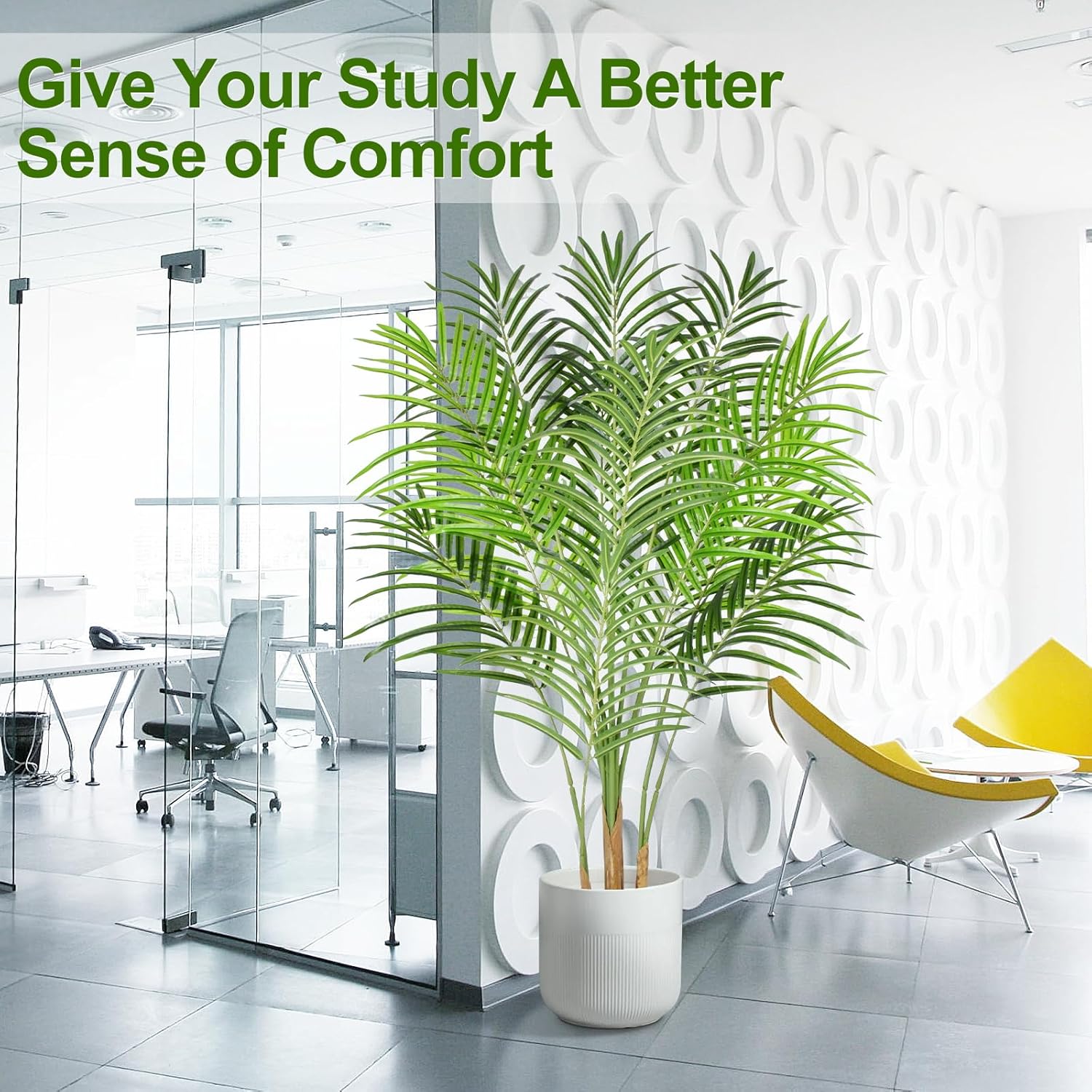 • Тази палма Dypsis lutescens с UV устойчива технология ще създаде слънчева атмосфера, където и да я поставите. Тя е перфектната декорация за вътрешни и външни помещения, дом, спалня, офис, вътрешен двор, селска къща, веранда, балкон, вход, камина, врата, стълбище, зелена градина, двор, трапезария, хол, модерен естетичен декор и др.