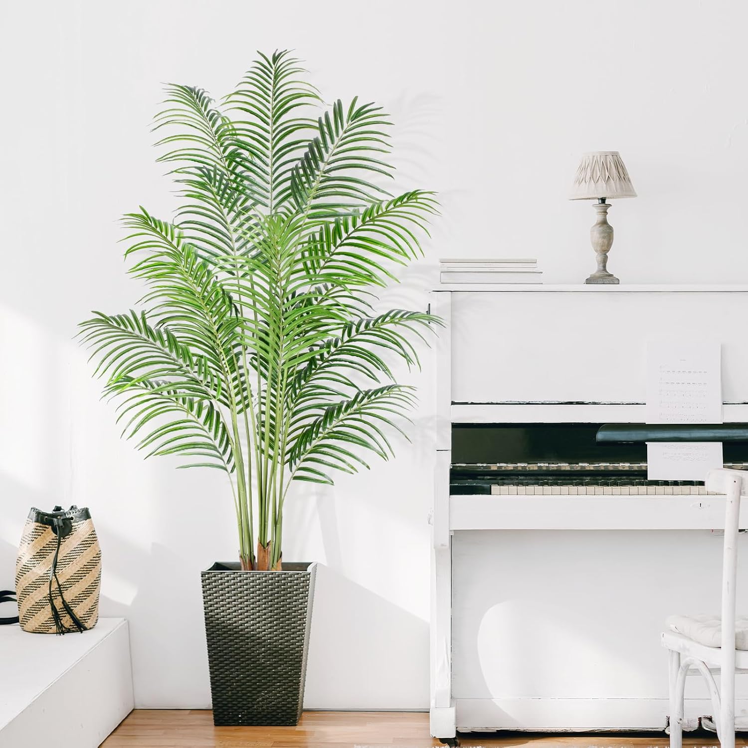 • Тази палма Dypsis lutescens с UV устойчива технология ще създаде слънчева атмосфера, където и да я поставите. Тя е перфектната декорация за вътрешни и външни помещения, дом, спалня, офис, вътрешен двор, селска къща, веранда, балкон, вход, камина, врата, стълбище, зелена градина, двор, трапезария, хол, модерен естетичен декор и др.