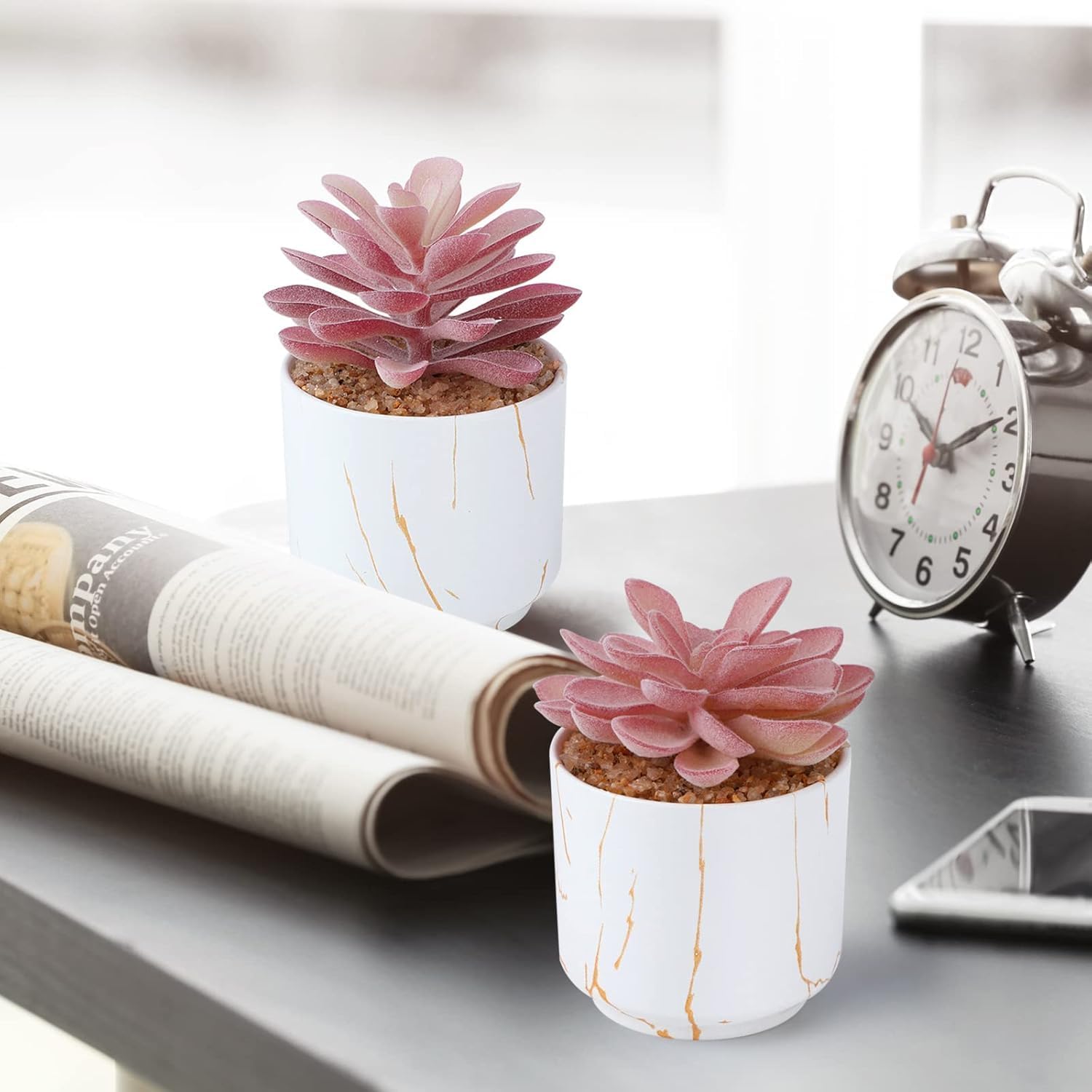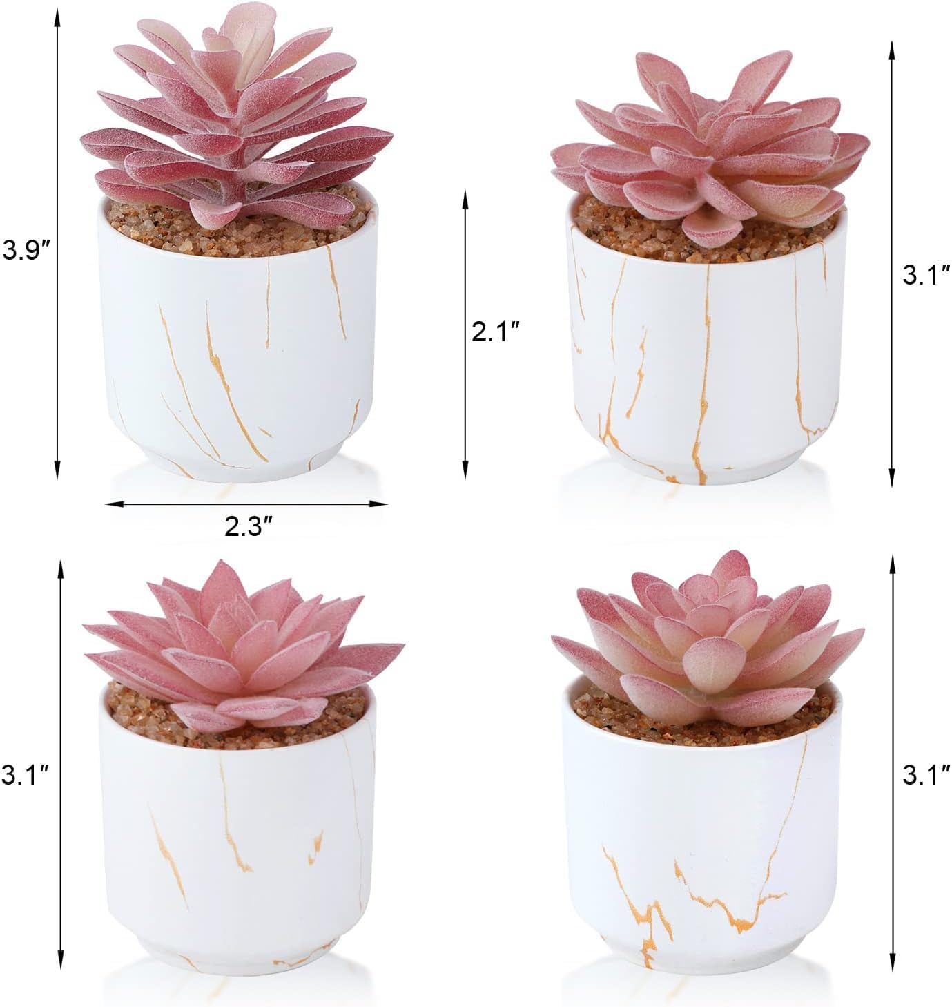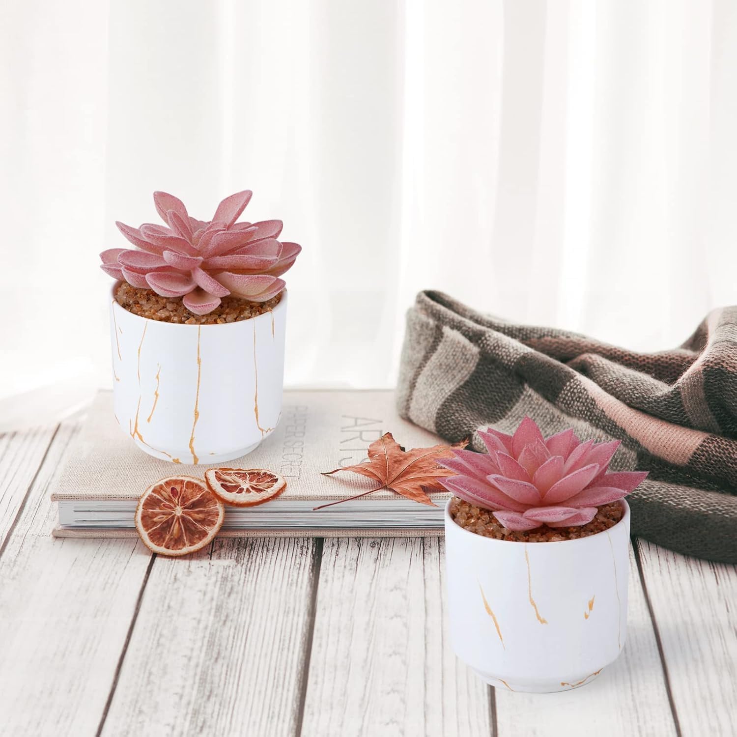 • Уникален дизайн Изкуствените сукуленти с изкуствени саксии за цветя са изработени от 100% бяла керамика със златна изработка. Уникални модерни изкуствени сукуленти със семпла лилава декорация и сочен вид, за да направят вашето офис пространство или декорация на мебелите ярки и позитивни за добър старт на деня.