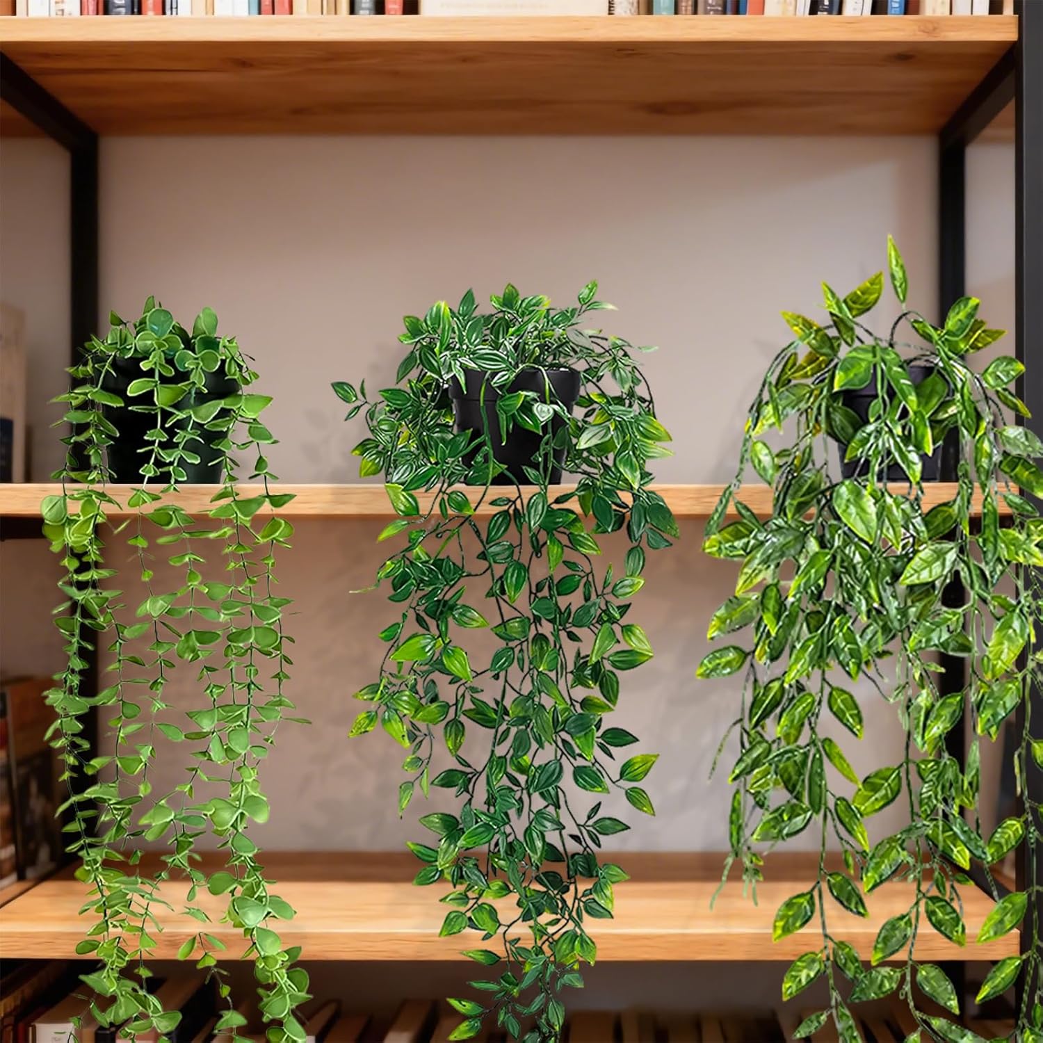 • НЕВЕРОЯТНО РЕАЛИСТИЧНИ - Насладете се на красотата на изкуствено растение, без затрудненията с поддръжката. Тези изкуствени висящи растения изглеждат 100% истински, с прозрачни листни жилки, реалистична форма и цвят. Те няма да увехнат или избледнеят и ще останат свежи за дълго време.