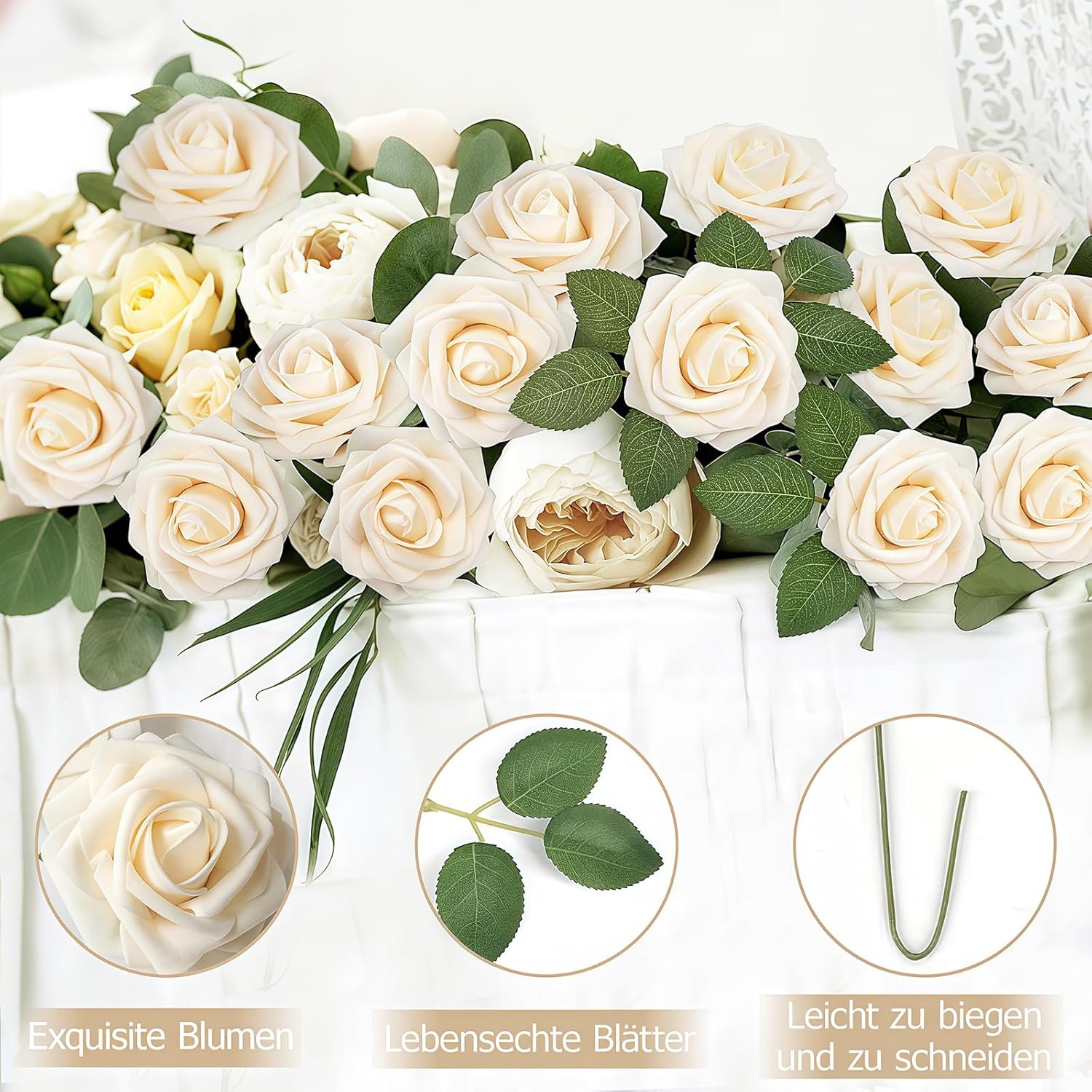 1. Лесно се огъва или скъсява, така че е идеален за изработка на букети, централни декорации, топки за целуване, бутониери, цветя за торти или други цветни декорации/аранжировки, необходими за вашата сватба, парти или декорация на дома.