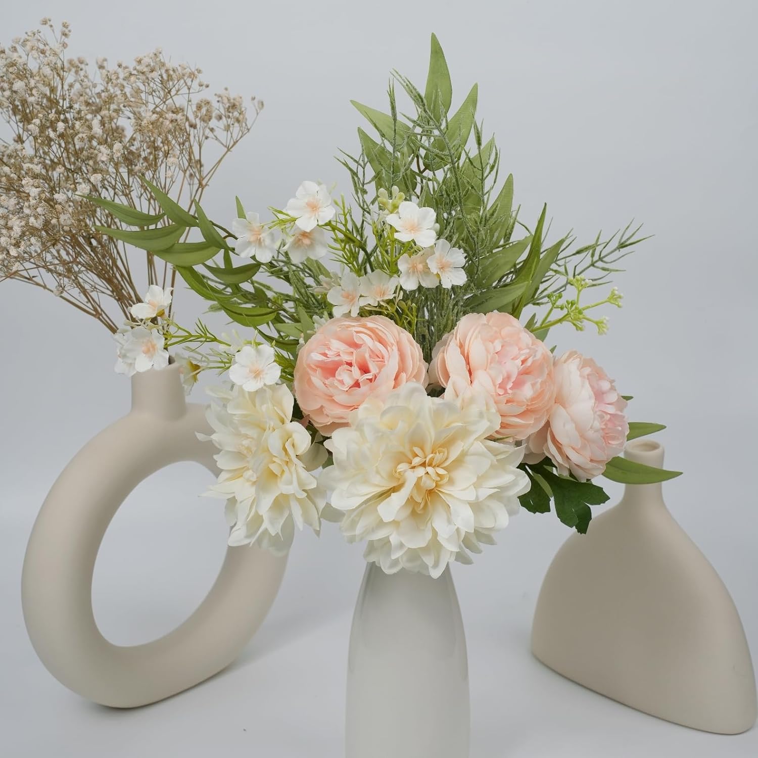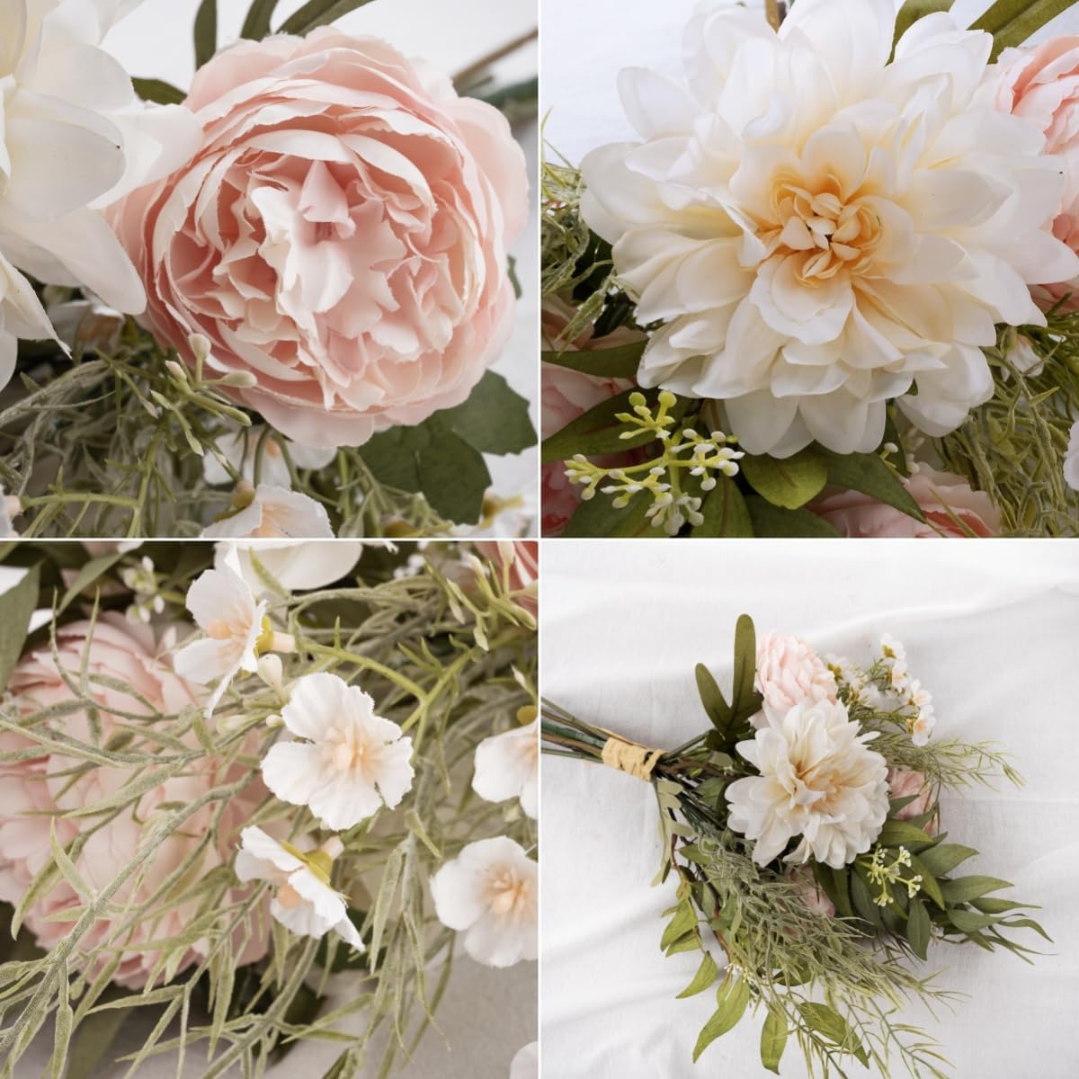 3 хортензии, 2 божура, 1 пшенична клонка, листа от евкалипт и храстови листа с пластмасови стъбла