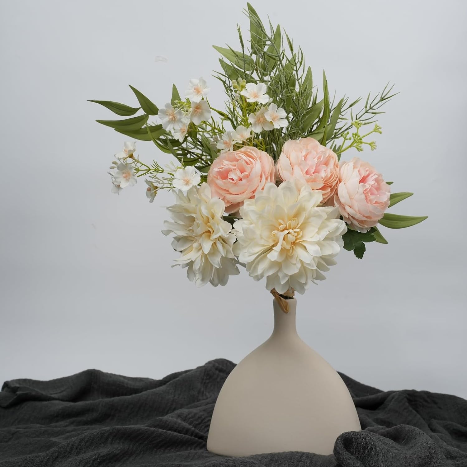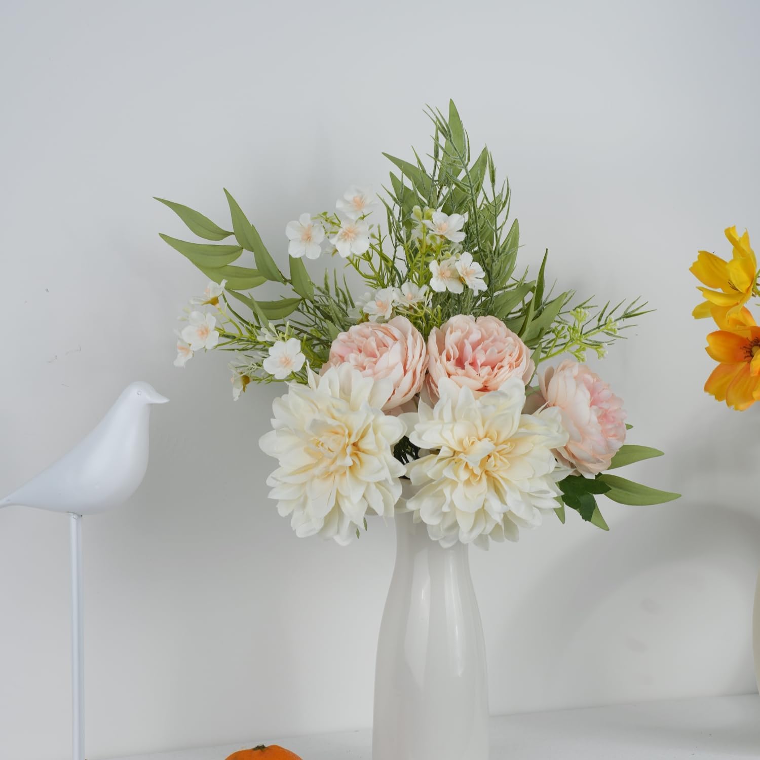 | Пакет | Изкуствен букет, 2 божура, 3 хортензии и храстови листа с пластмасови стъбла |