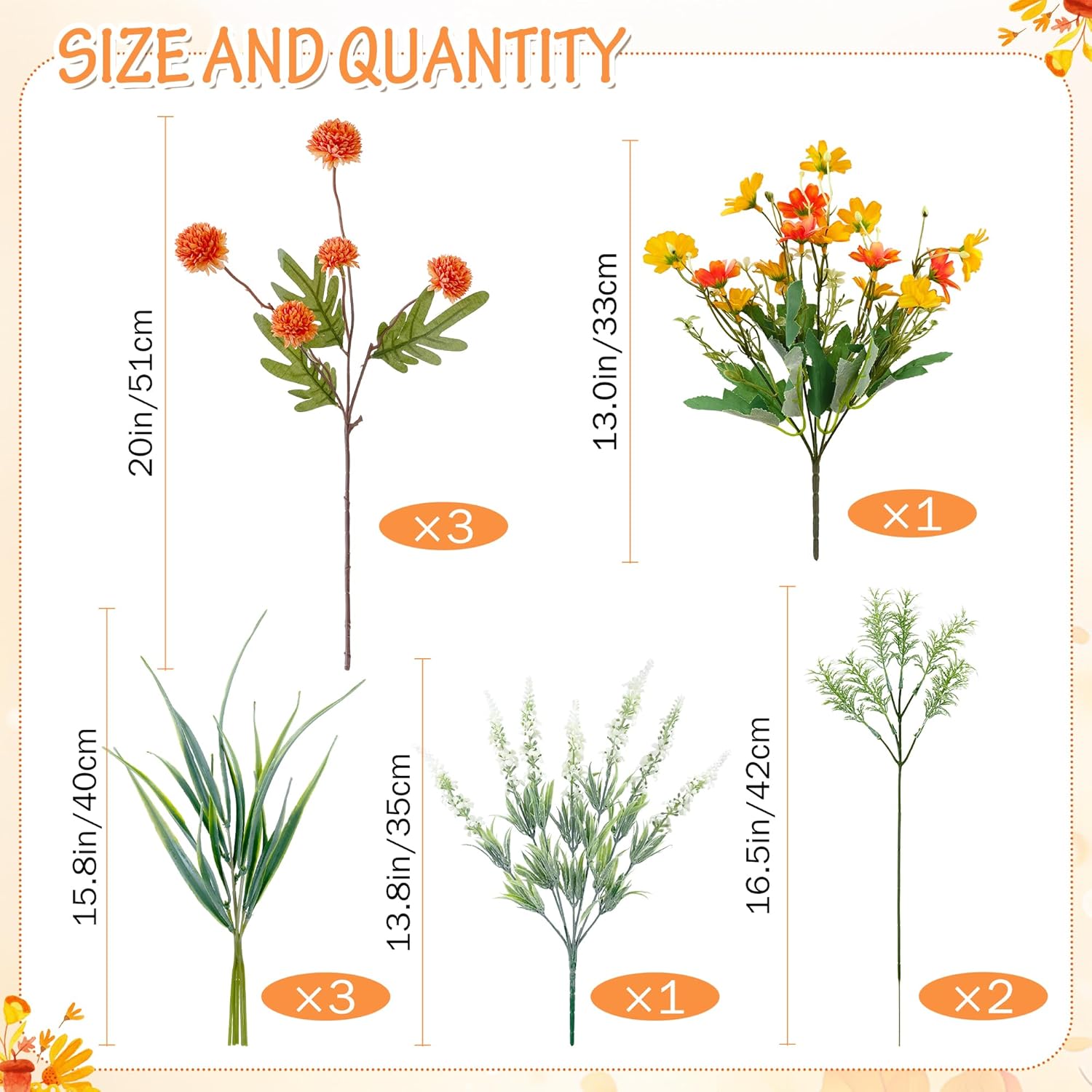 • Красива декорация: тези висококачествени копринени цветя придават естествен характер. С дължина от приблизително 38 см, тези изкуствени цветя пасват идеално във вази или като красива украса за маса за сватби, рождени дни.