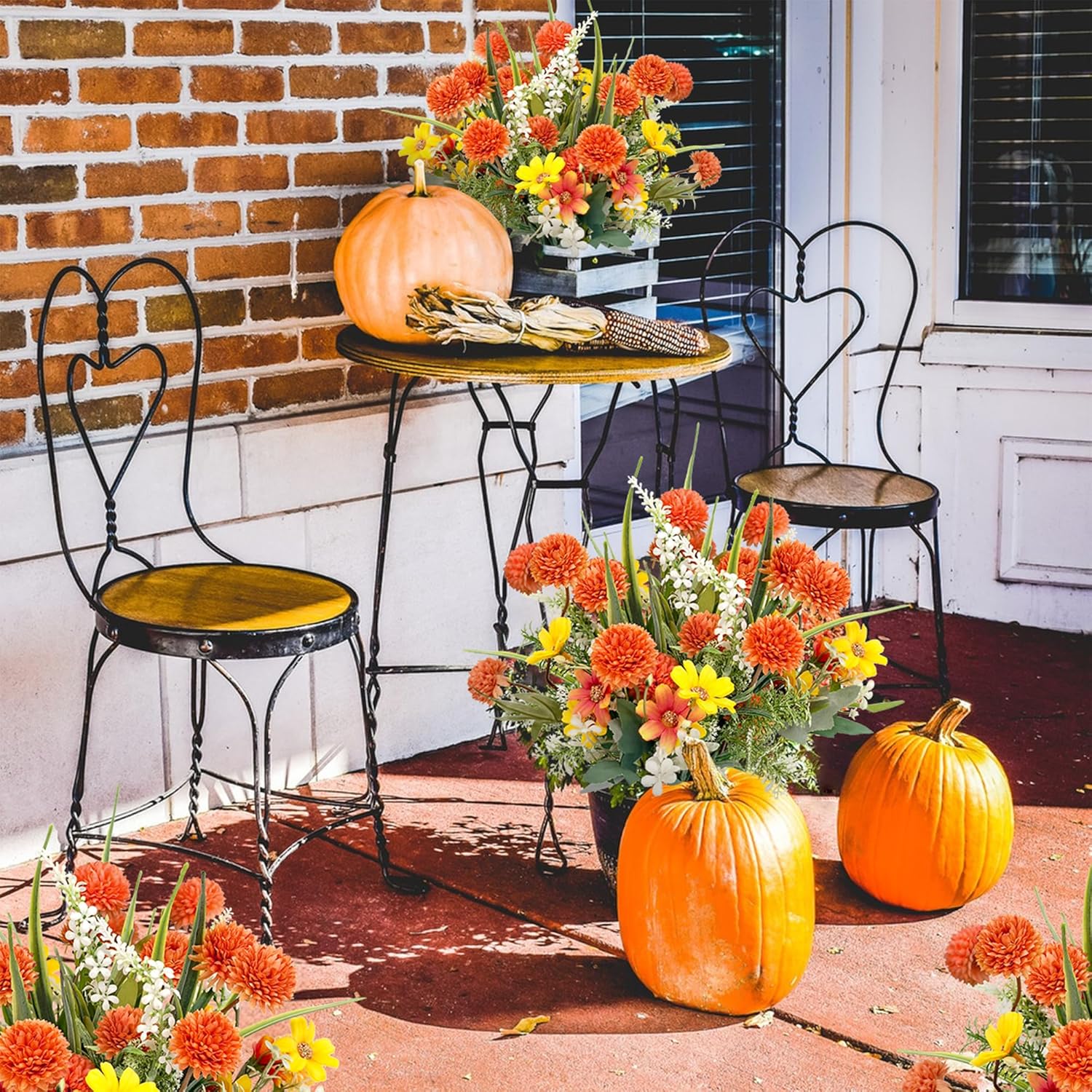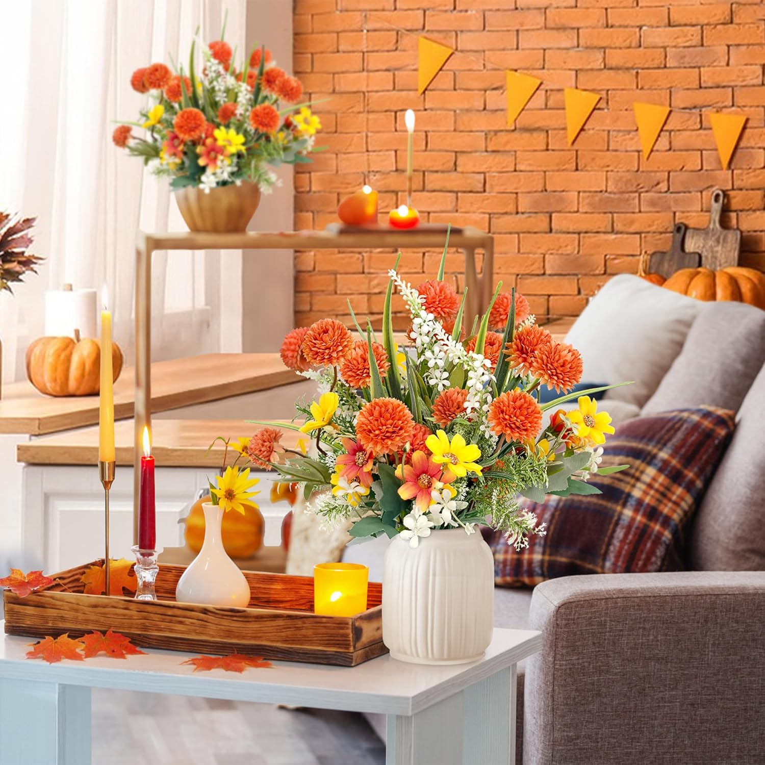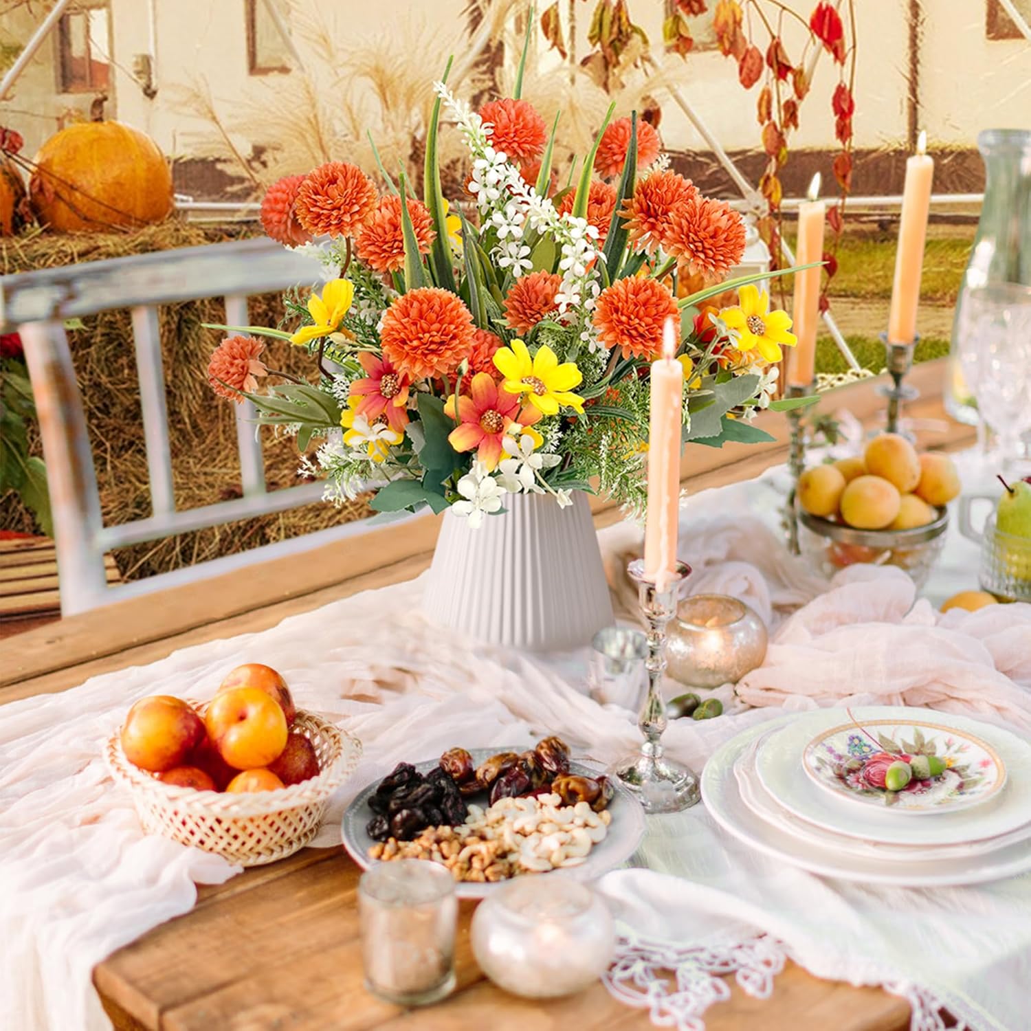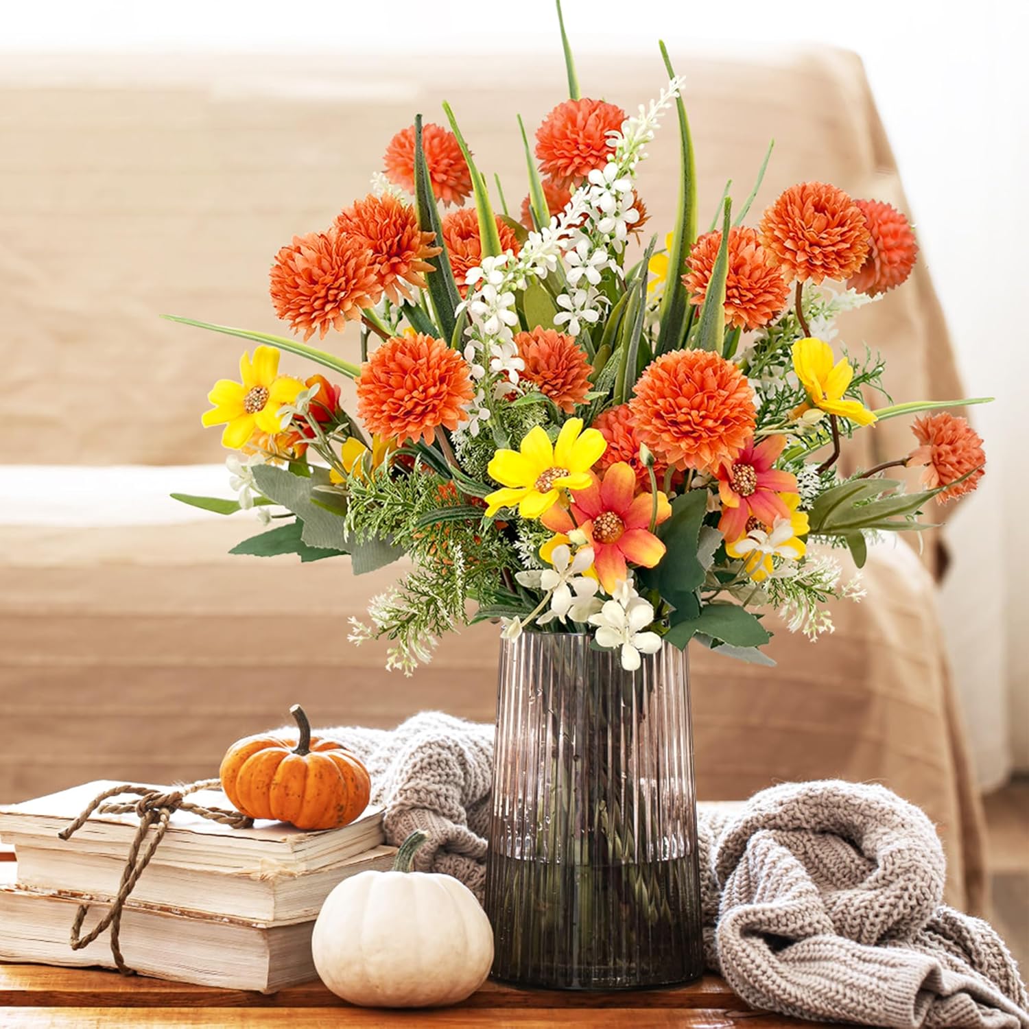 Изкуствени цветя като истински изкуствени цветя, есенен букет, изкуствени копринени цветя, изкуствени цветя, растения, клони, декорация, есенни цветя, диви цветя за стая, маса, външна, есенна декорация (оранжево)