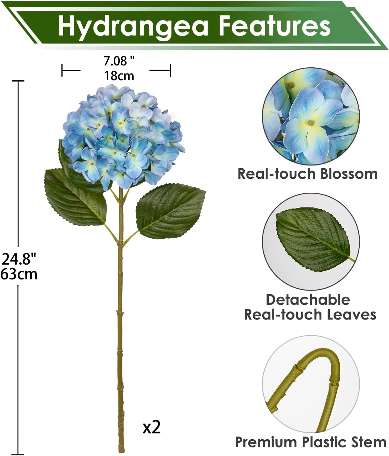 Изкуствени цветя от хортензия Briful, истински изкуствени цветя, като истинска хортензия, изкуствени клони, цветни аранжировки за офис маси, хотели, рецепции, чакални, трапезарни маси, декорация на кафенета, пакет от 2