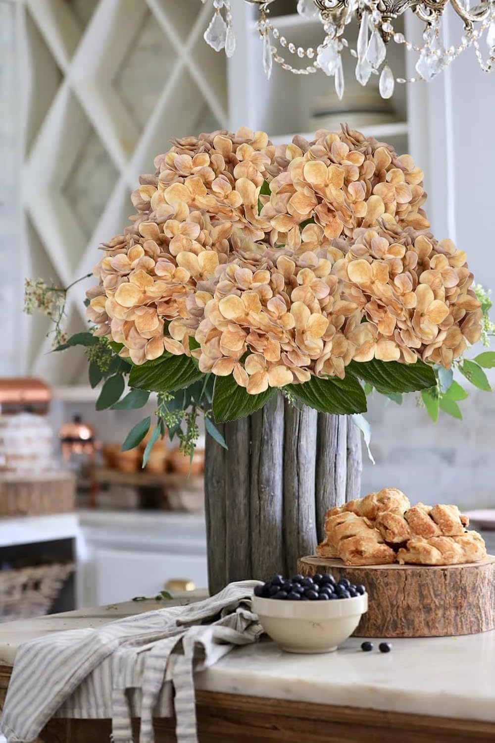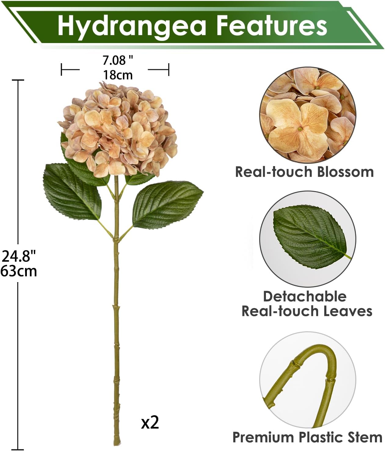 Изкуствени цветя от хортензия Briful, истински изкуствени цветя, като истинска хортензия, изкуствени клони, цветни аранжировки за офис маси, хотели, рецепции, чакални, трапезарни маси, декорация на кафенета, пакет от 2