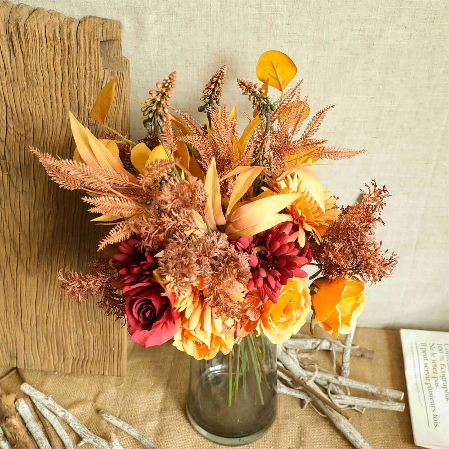 Изкуствени цветя Weldomcor, Изкуствени растения хортензия, Декорация от изкуствени цветя, Копринени цветя, Букет от изкуствени цветя, Аранжировки от изкуствени цветя, Декорация за сватбена зала, Есенно червено