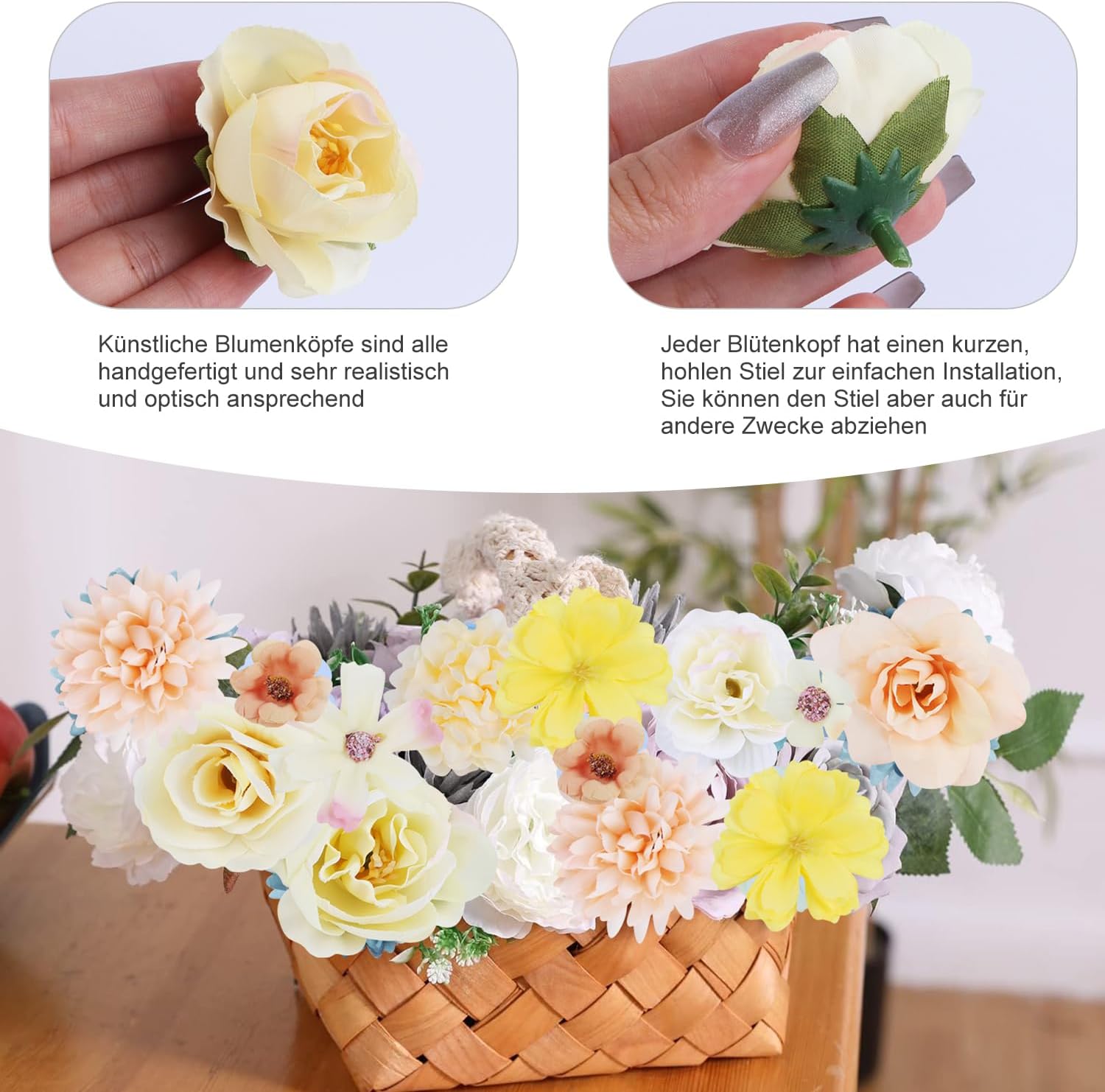Всяка цветна глава има кухо късо стъбло, което е лесно за изработка и закрепване. Можете също така да отрежете задната част на цветето за други цели.