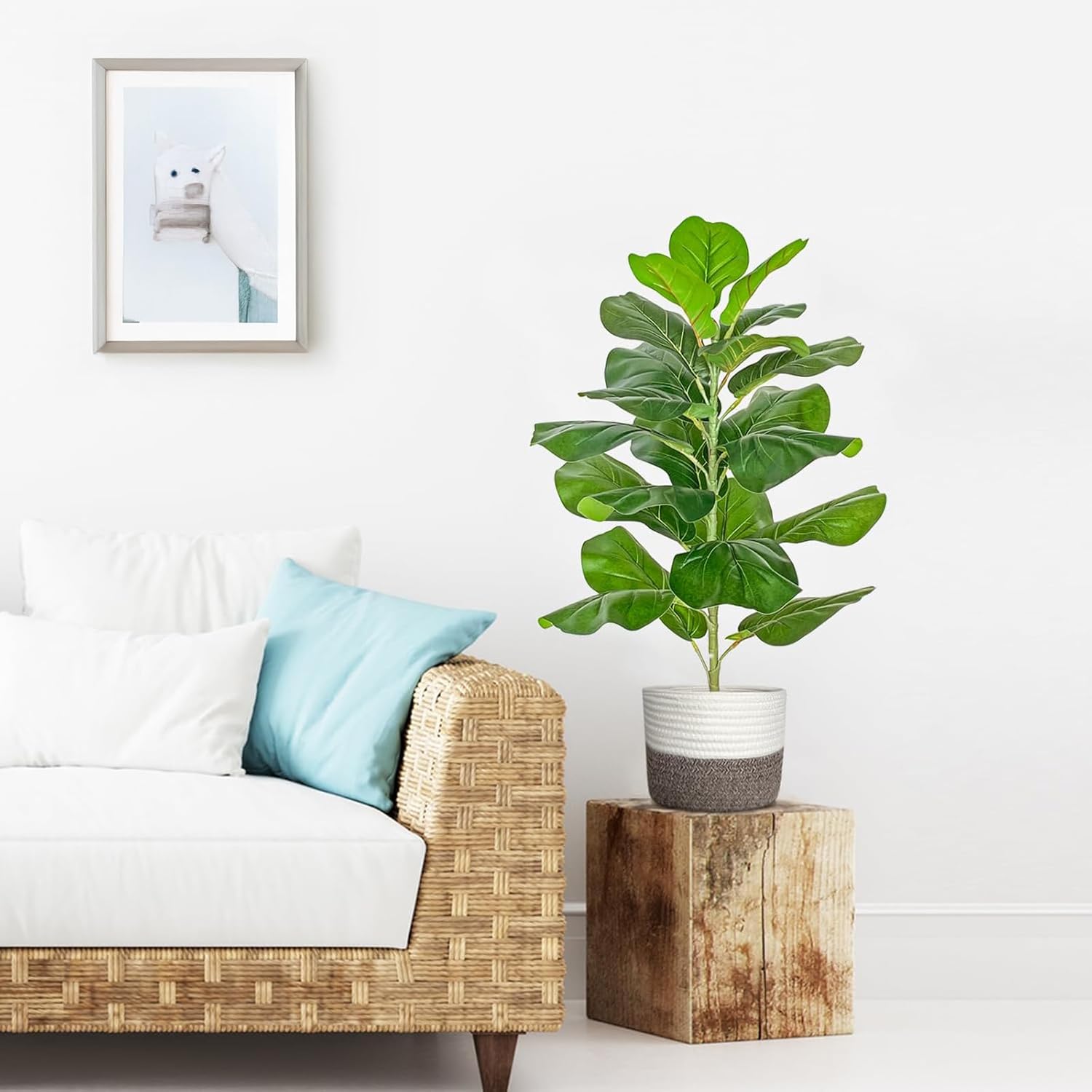 • Реалистично изкуствено дърво: 78 см (30,5 инча) изкуствен фикус с реалистично оцветяване и текстура, състоящ се от 21 листа с различни размери и етапи на растеж - вярно възпроизведени в съотношение 1:1 на истински растения. Това измамно истинско изкуствено растение създава естествена и домашна атмосфера, разпространява комфорт и задава цветни акценти във вашата стая.