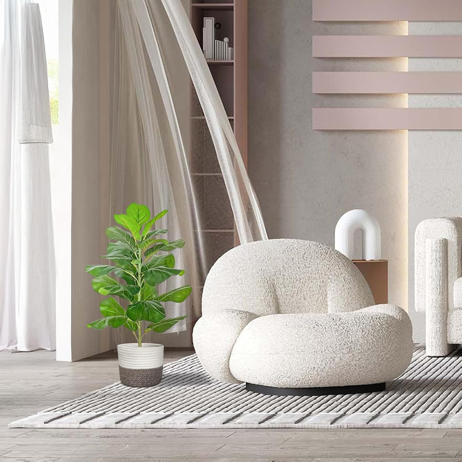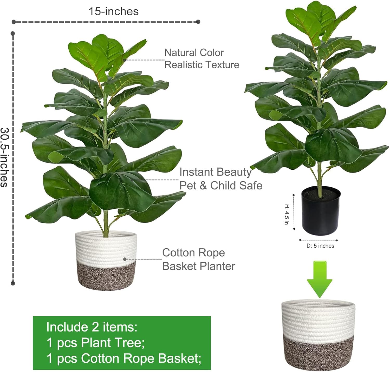 • Безопасно и стабилно: със здрава бетонна основа, това изкуствено каучуково дърво е безопасно и устойчиво на накланяне. Декоративното дърво се предлага и със стилна кошница от памучно въже, която изглежда естетично и спестява допълнителни разходи за саксии. Идеално за домове с деца и домашни любимци.