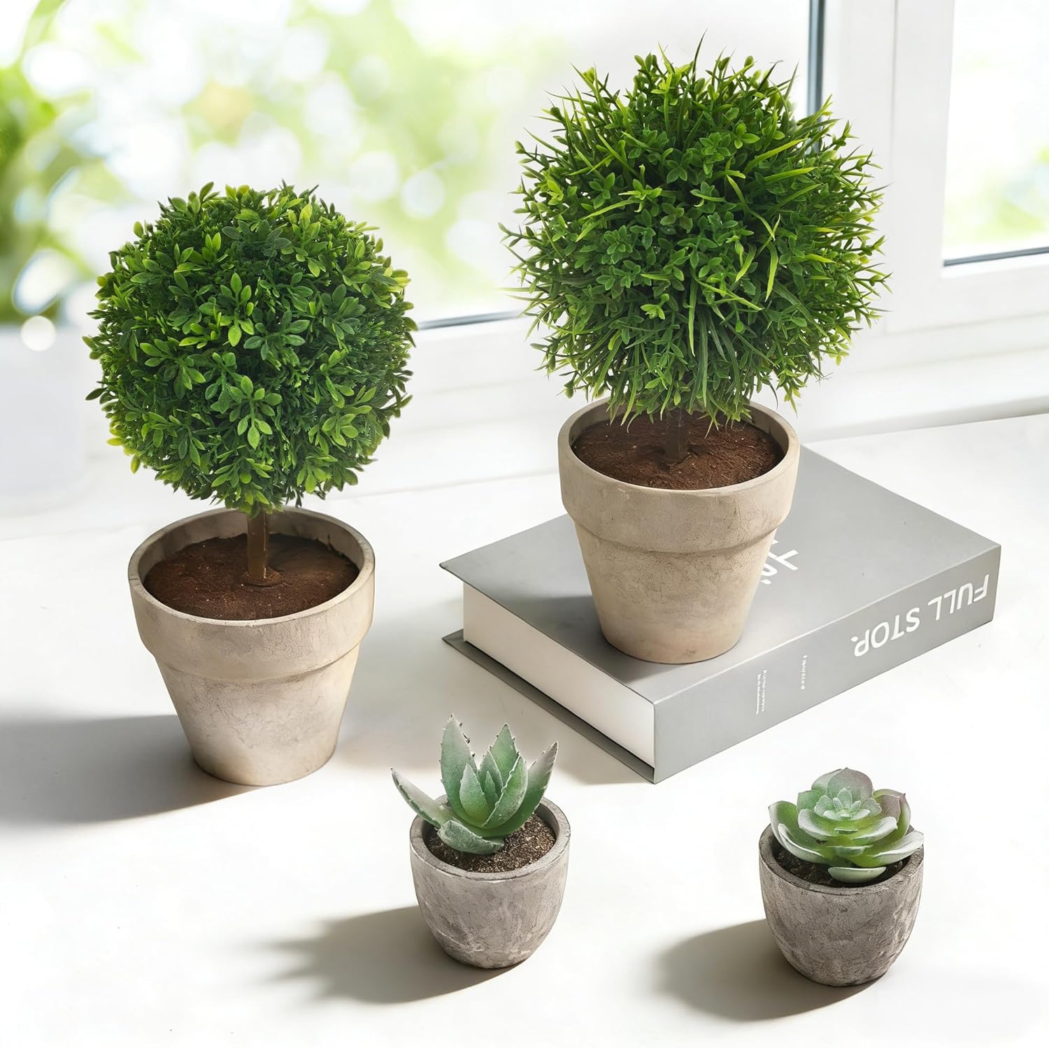 Изкуствено растение, пакет от 4 изкуствени растения като истински стайни растения, малко дърво, изкуствено растение, сукулентно растение, пластмасови растения, зелени растения за хол, баня, спалня, кухня, офис