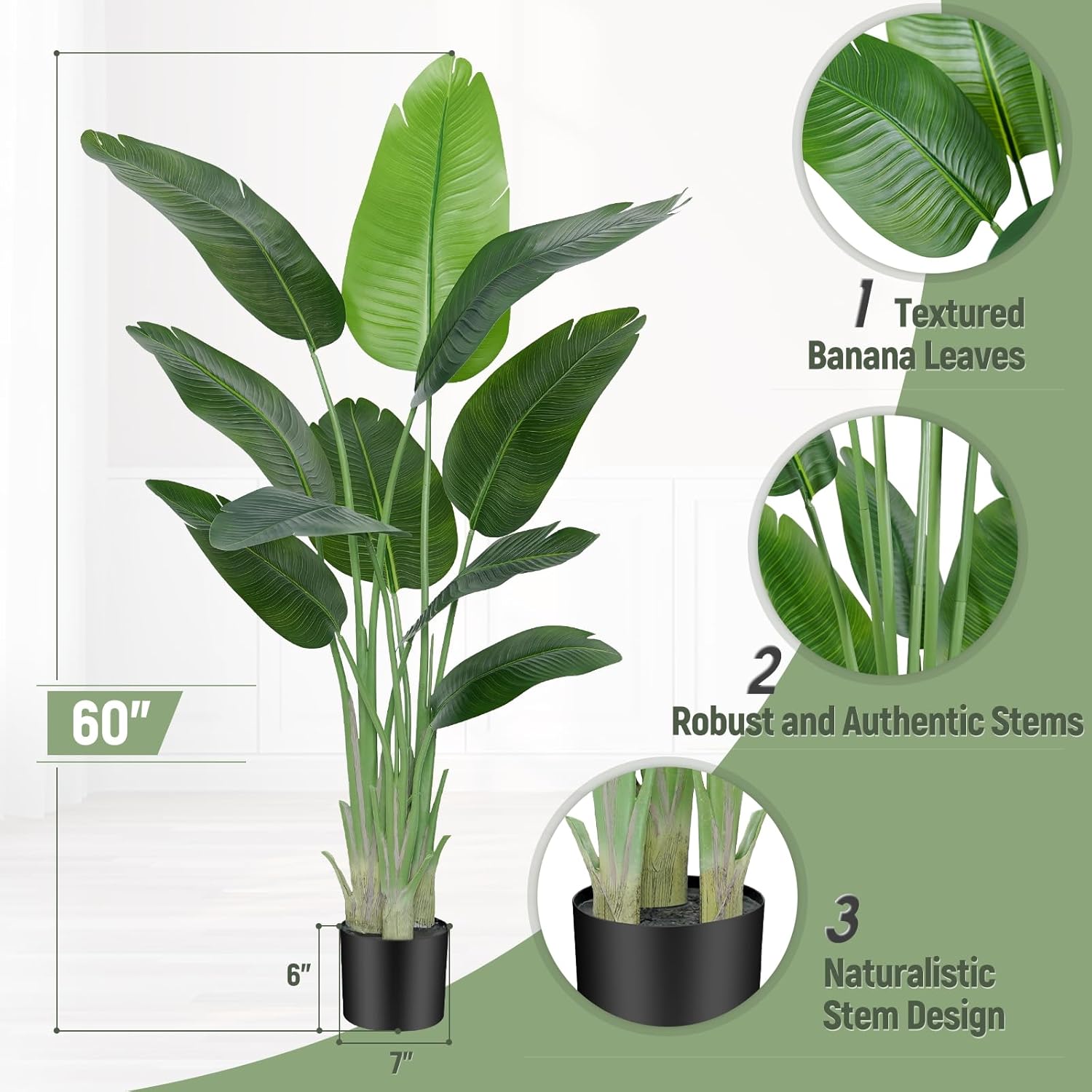 • Изкуствено растение райска птица Нашето изкуствено бананово дърво за пътуване, вдъхновено от красотата на растенията райска птица, внася нотка екзотична елегантност във всяка стая с реалистичния си вид.