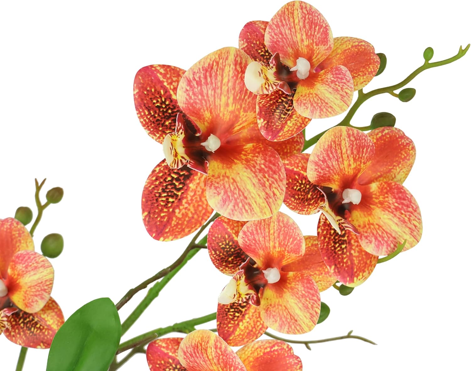 Изкуствената орхидея Фаленопсис е декоративна атракция за дома. Визуално, това изкуствено цвете впечатлява с цветни метлици, листа от орхидея и въздушни корени, пресъздавайки вярното и детайлно копие на този красив вид орхидея. Тъй като тази орхидея не изисква светлина като истинските растения, тя може да бъде поставена и в ниши, както и в помещения със слаба светлина. Например, изглежда страхотно на бюфет, на перваза на прозореца или на масата в хола. Много красиво, това цвете служи като декорация за сватба, рожден ден и други тържества. Изработено е от висококачествена изработка от полиестер, пластмаса и керамика. Поставено в елегантна керамична купа, цъфтящото стайно растение "Фаленопсис" е декоративно допълнение към дома и е трудно различимо от истинското. Страхотна идея за подарък!
