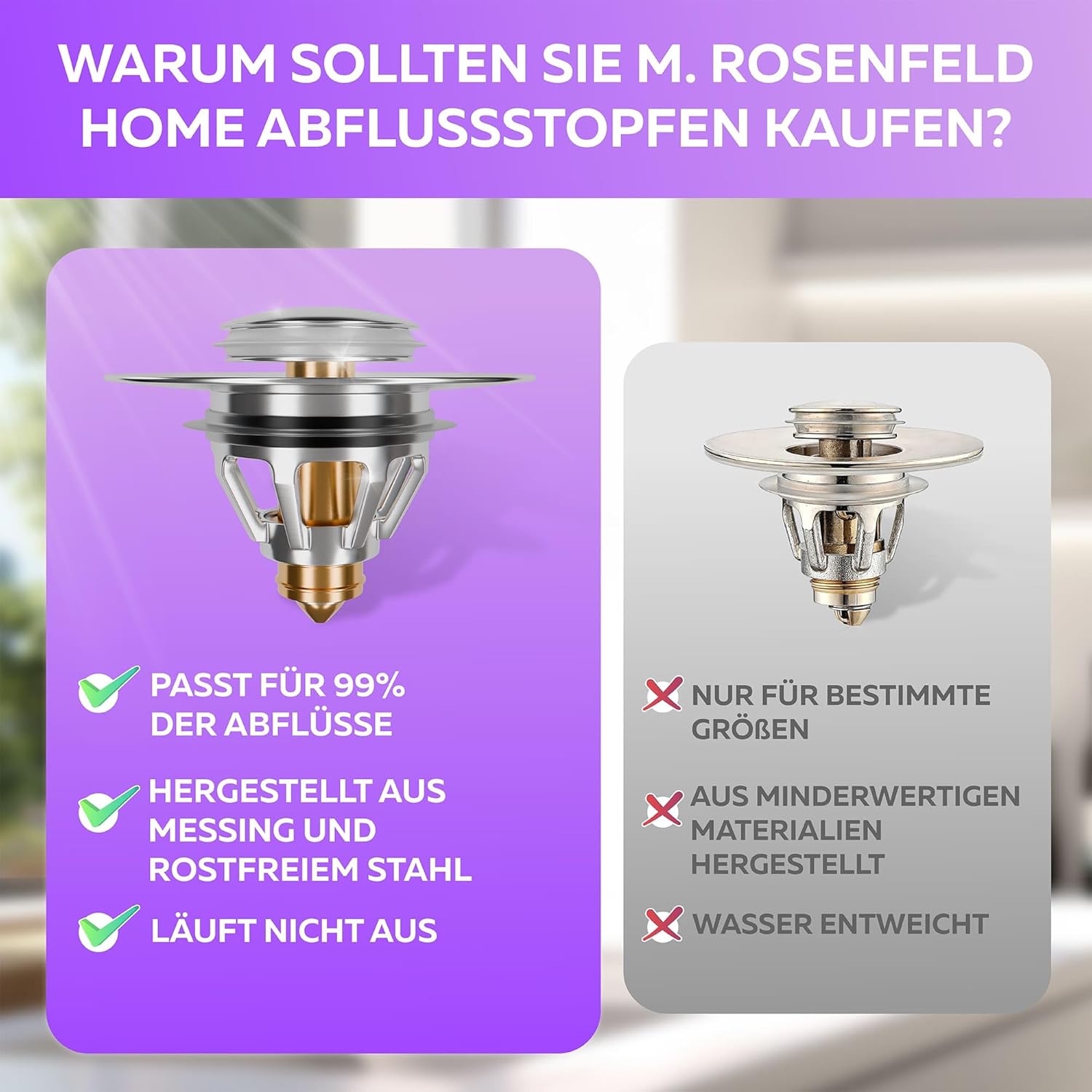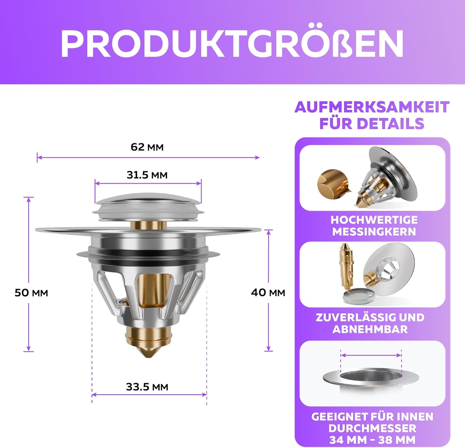 • Перфектно прилягане: този универсален 40 мм тапа за мивка пасва на всички стандартни мивки и бидета и покрива перфектно цялата площ на сифона. Най-популярният модел в Германия