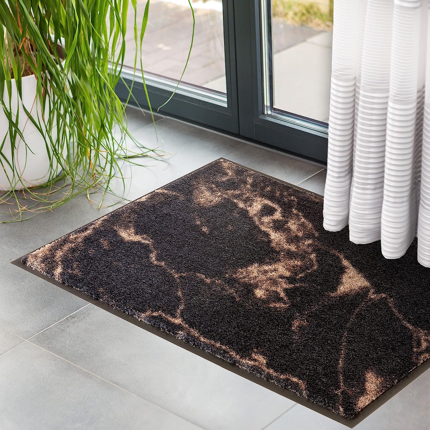 Изтривалка Beautiful Living, 50 x 70 см, Правоъгълник, Полиамид, Неплъзгаща се повърхност, Мрамор Антрацит-тауп