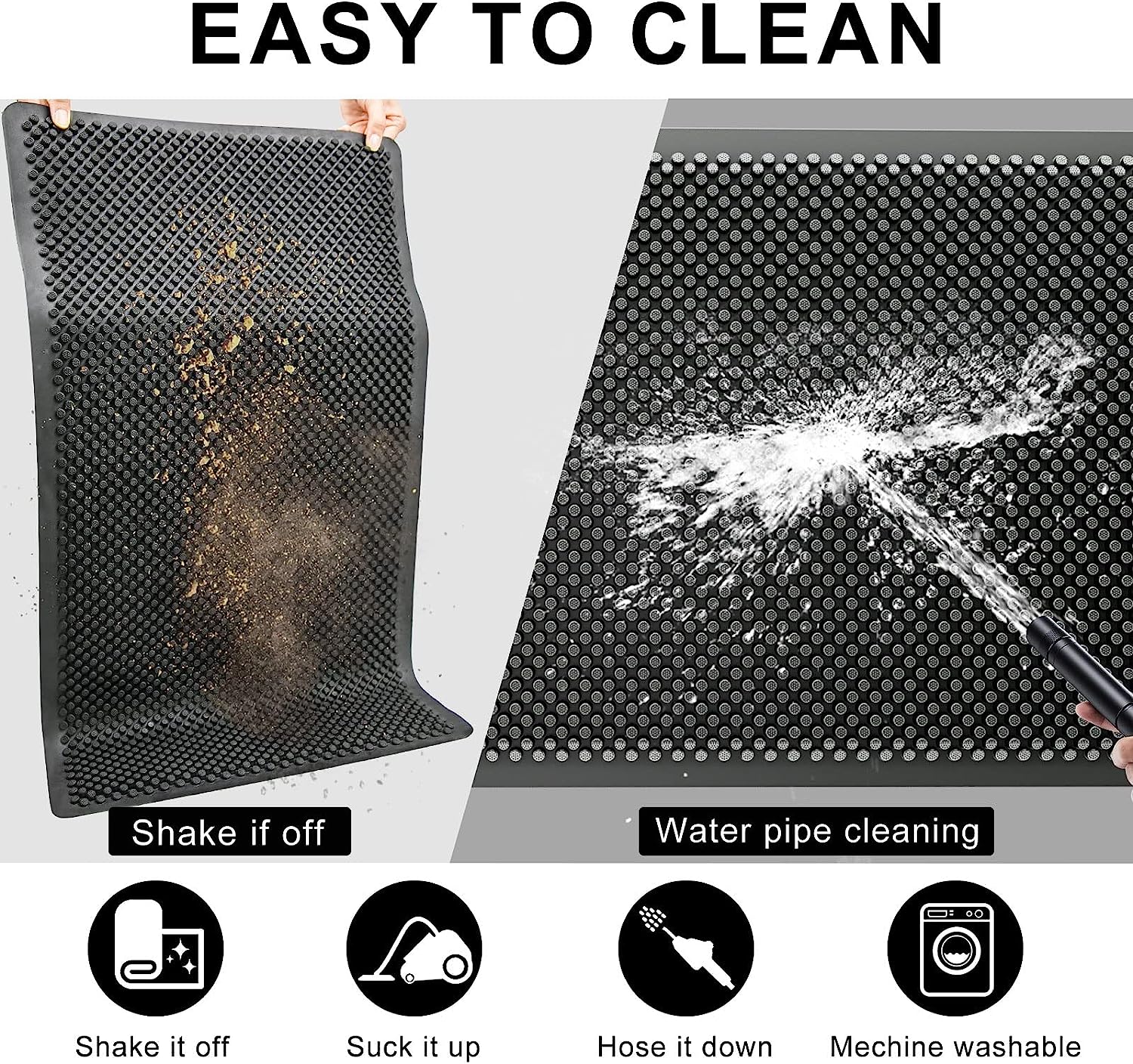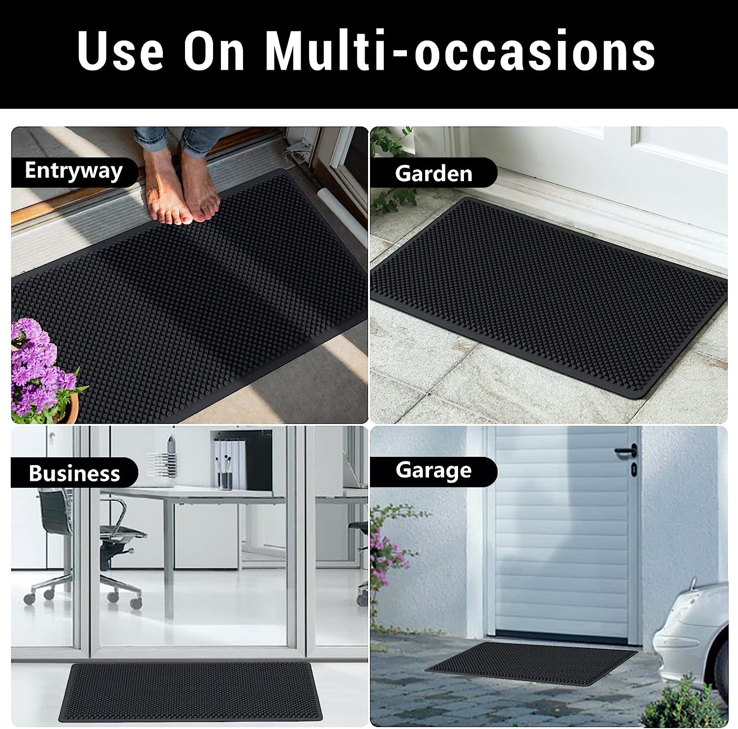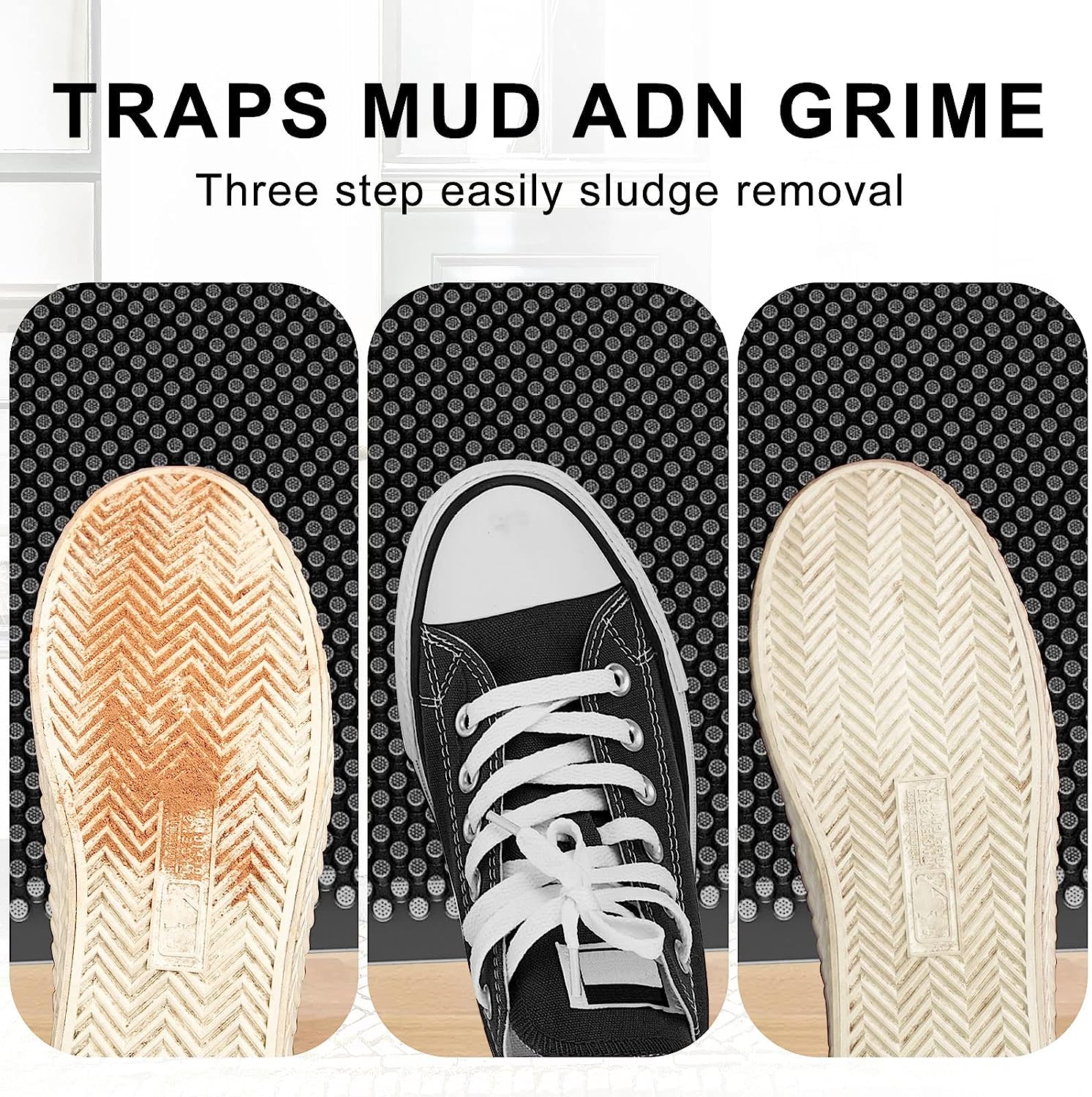 • Неплъзгаща се основа за улавяне на мръсотия на открито е снабдена с издръжлива и уникална силиконова вендуза от долната страна, за да държи постелката на място, без да се плъзга.