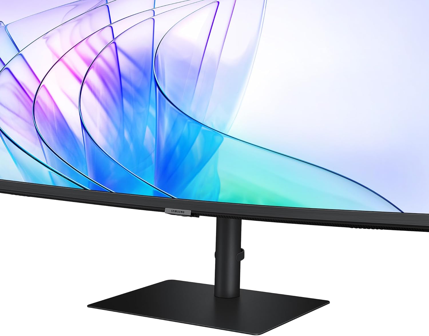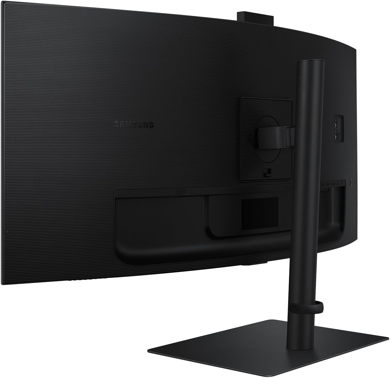 Извит монитор Samsung ViewFinity S65VC 34-инчов, с високоговорители и уеб камера, VA панел, 3440 x 1440 пиксела, честота на опресняване 100 Hz, време за реакция 5 ms, 90 W зареждане през USB-C, Pivot