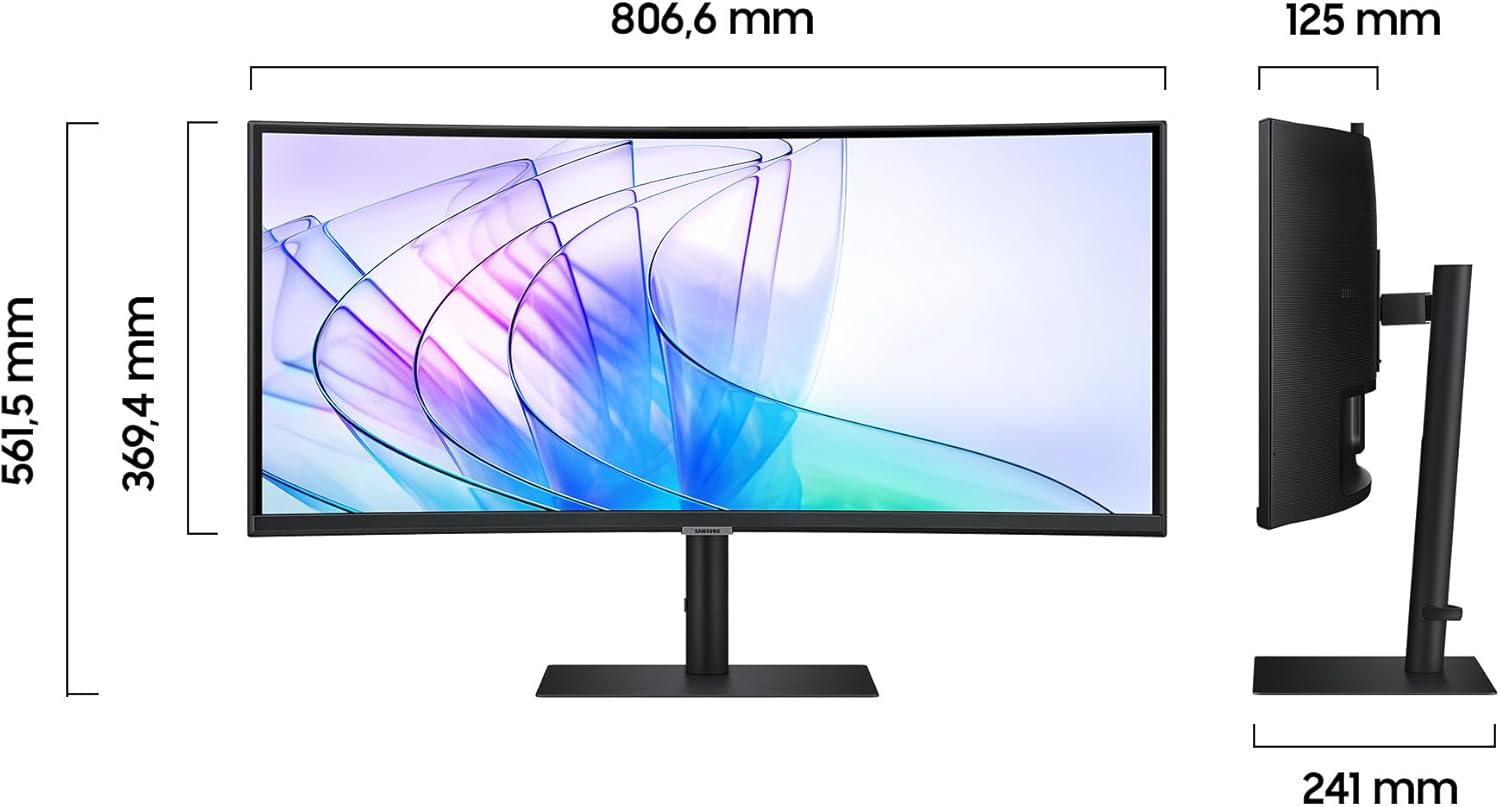 • Съдържание на пакета: 1 x Samsung ViewFinity S65VC извит монитор 34 инча, 1,5 м захранващ кабел, 1 x HDMI кабел, 1 x DisplayPort кабел, 1 x USB-C кабел, 1 x USB кабел, LS34C652VAUXEN