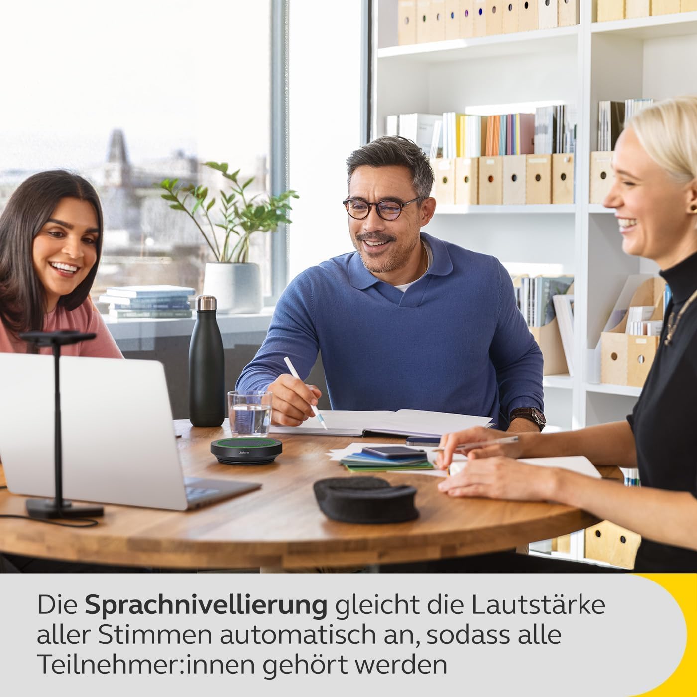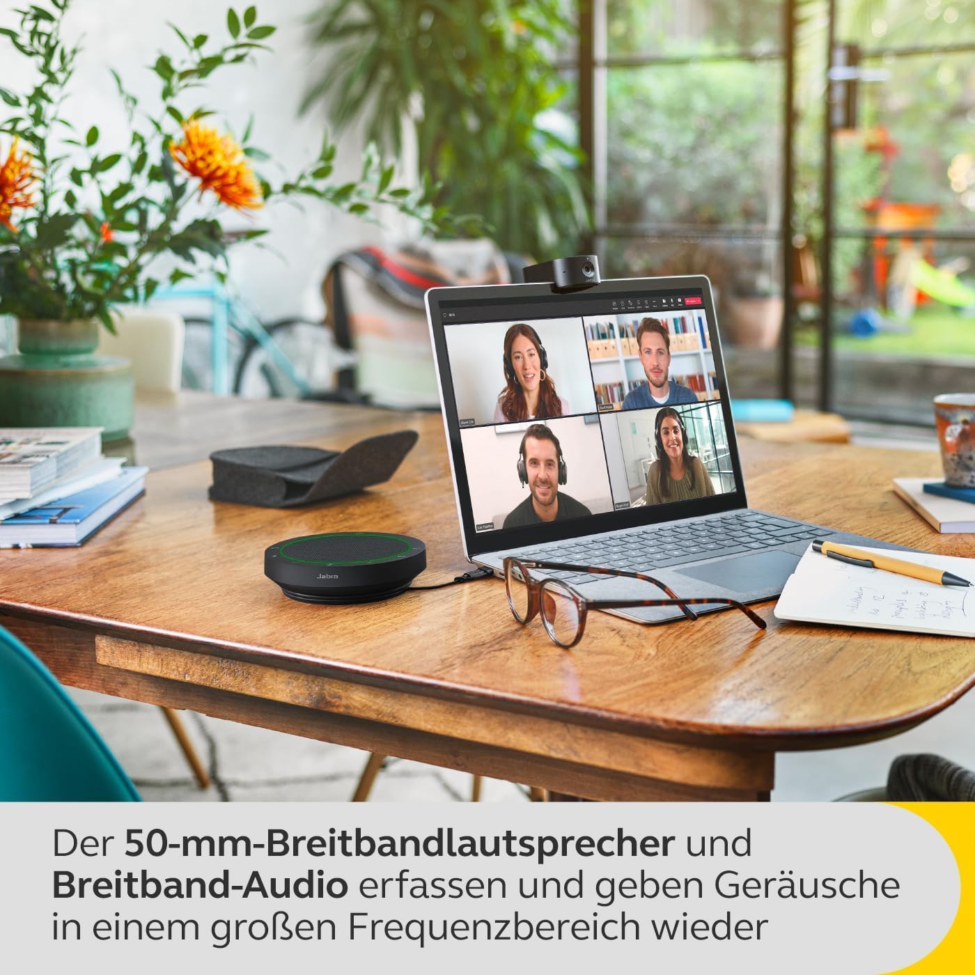 Jabra Speak2 55 Bluetooth хендсфри разговори 4 микрофона с шумопотискане, 50 мм широколентов високоговорител, широколентов звук, компактен, преносим - сертифициран от MS Team - тъмносив