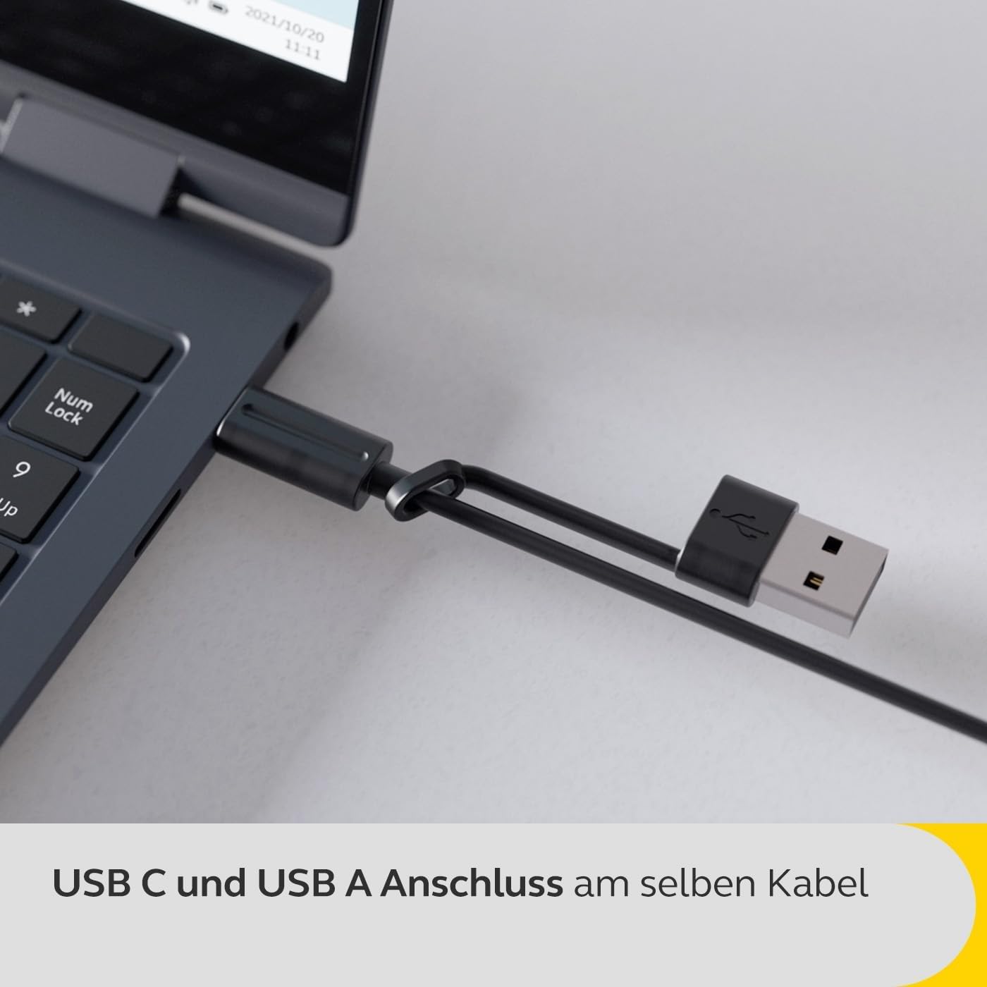 • Plug and play свързаност: USB-C и USB-A са на един и същ кабел и са съвместими с компютър. До 12 часа живот на батерията и Bluetooth обхват до 30 м за смартфон или компютър