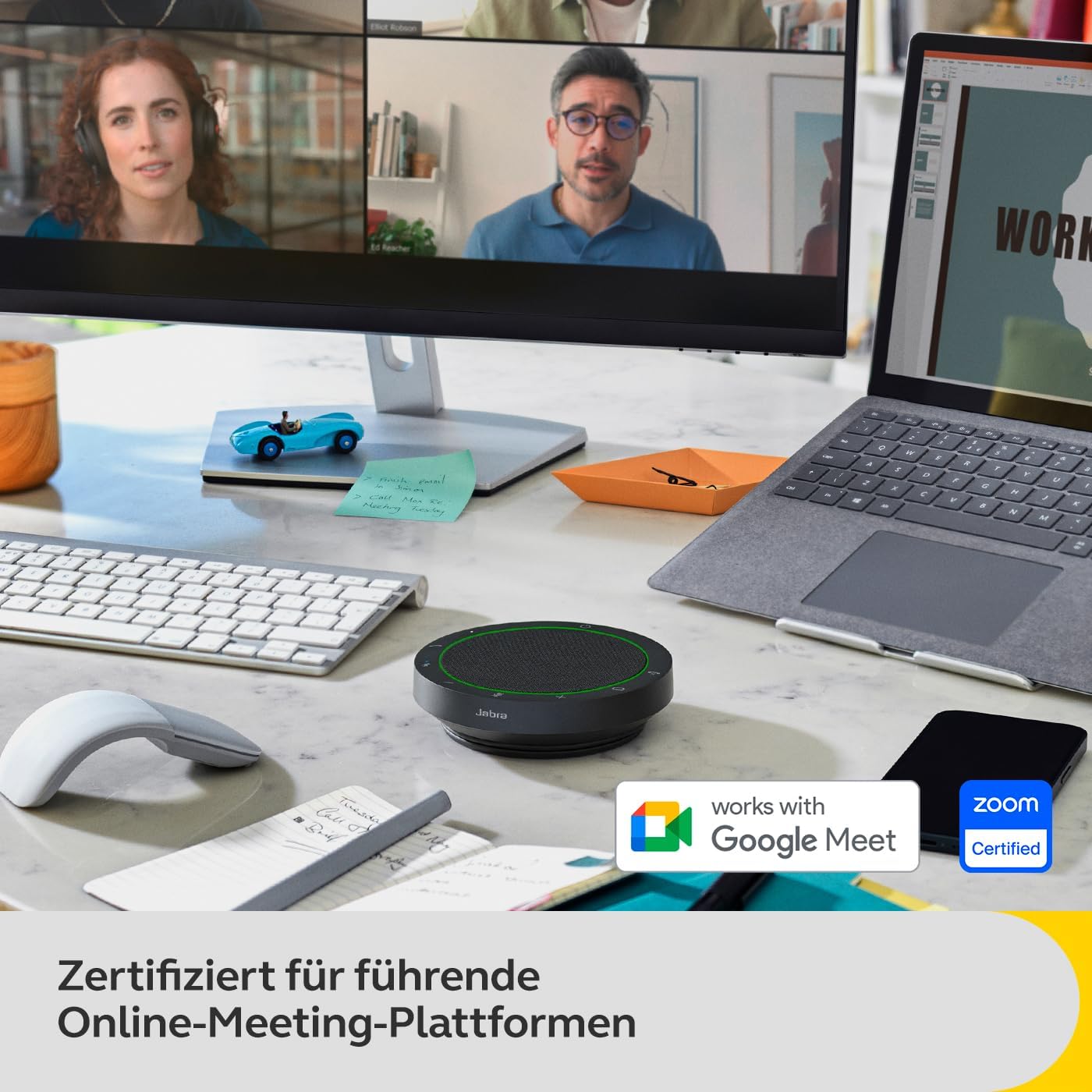 Jabra Speak2 55 Bluetooth слушалки за свободни ръце, 4 микрофона с шумопотискане, 50 мм широколентов високоговорител, широколентов звук, компактни, преносими - сертифицирани за Zoom и Google Meet, тъмносиви