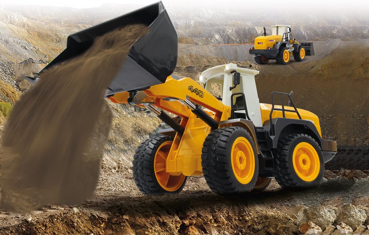 Дистанционно управляван RC колесен товарач, който се учи и извършва маневри самостоятелно - това е новост на пазара. С този багер можете да се почувствате като на истинска строителна площадка. Веднъж предварително направен и съхранен на дистанционното управление 2.4 GHz, колесният товарач извършва същата маневра отново с натискане на бутон - съвсем самостоятелно - и толкова често, колкото желаете. Страхотен верен вид, истински функции на багер и лесни за научаване функции допълват цялостния пакет на този колесен товарач. Акценти: • Реалистичен звук на двигателя, може да се изключва • Клаксон • Повдигане/спускане/накланяне на лопатата • Програмируеми функции с функция за повторение • Функция за автоматично изключване • Предупредителен звук за заден ход • Задвижване на 2 колела • Функции на индикаторите: • Напред/назад • Ляво/дясно • Стоп Съдържание на кутията: • Модел • Дистанционно управление 2.4 GHz • Препоръчителен аксесоар: • Дистанционно управление: 2 x AA батерии 1.5 V • Модел: 4 x AA батерии 1.5 V • Зарядно устройство "Charge Cell", включващо 6 x NiMh 1.2 V 2700 mAh батерии, артикулен номер. 15 3085 Технически данни: Дължина: ~ 440 мм Ширина: ~ 140 мм Височина: ~ 180 мм Тегло: ~ 89 мм 8 г