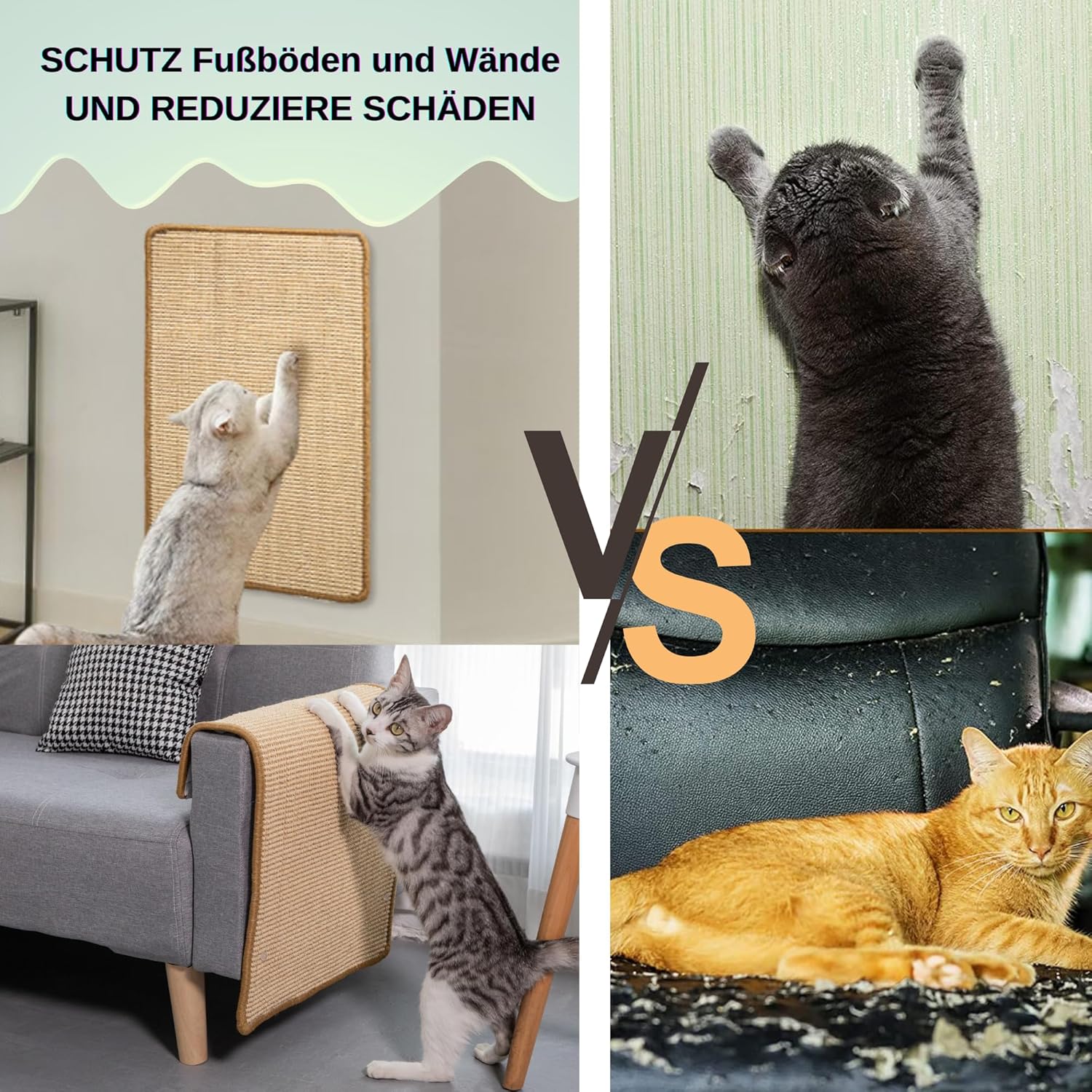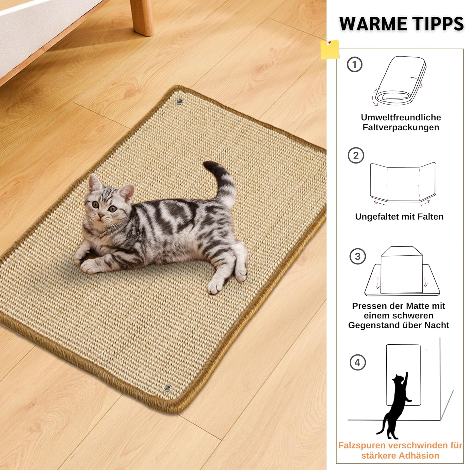 • По-практично: можете да залепите тази защитна постелка за килими против драскане на пода като драскалка за под, да я залепите на стената като драскалка за стена за котки или като драскалка в ъгъла за котки; Тази драскалка за котки може да се залепи за стена, под, дърво, стъкло, плат (без козина) и др., което може да ви помогне да създадете по-добри възможности за драскане.
