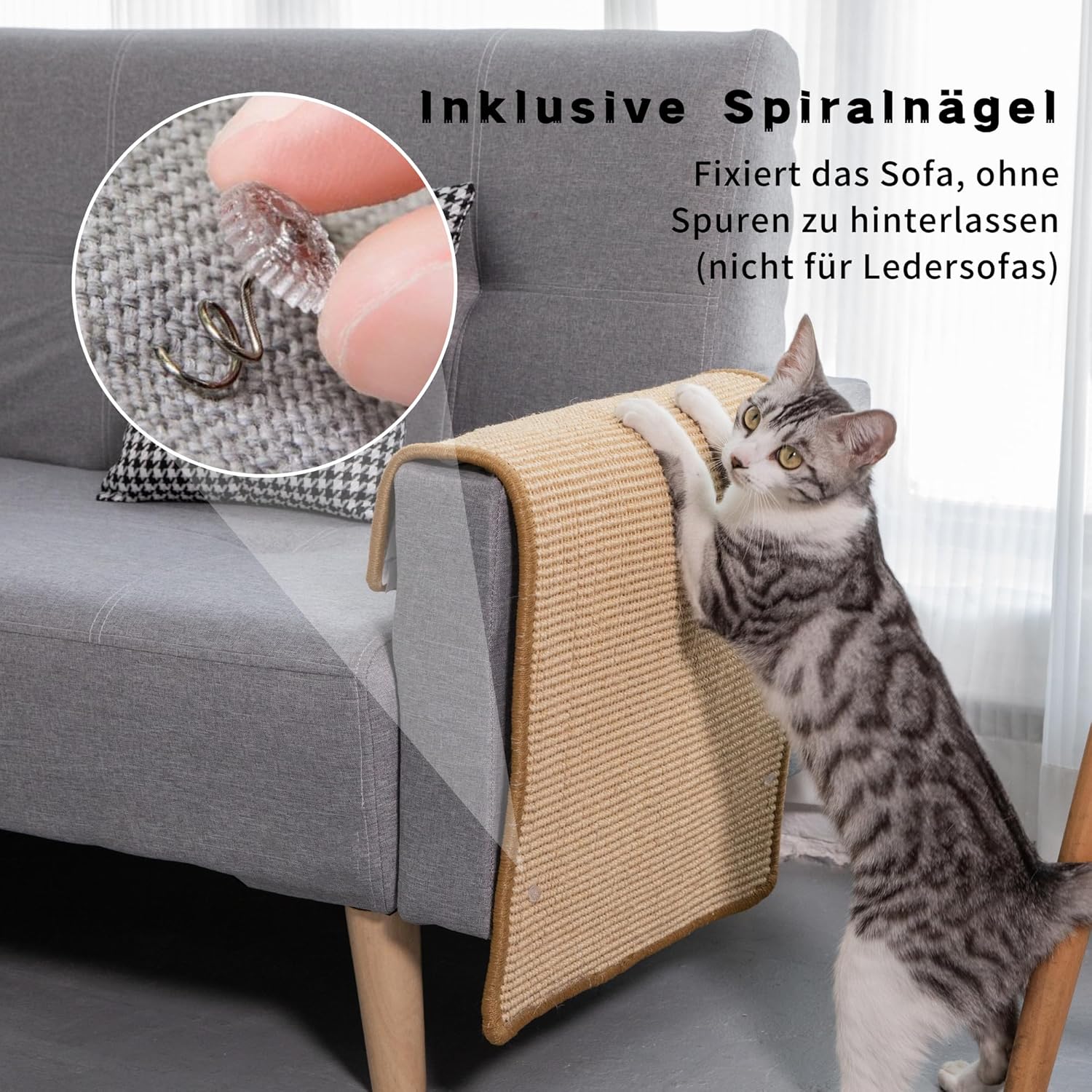 • 【Защита на мебелите】: подложката за драскане за домашни котки предпазва дивани, подове, столове и други мебели, но също така предпазва ноктите на котката, така че котката да може да използва сизаловата подложка, за да стърже ноктите си, вместо да драска мебелите, и котката да може да спортува, да играе или да спи върху нея.