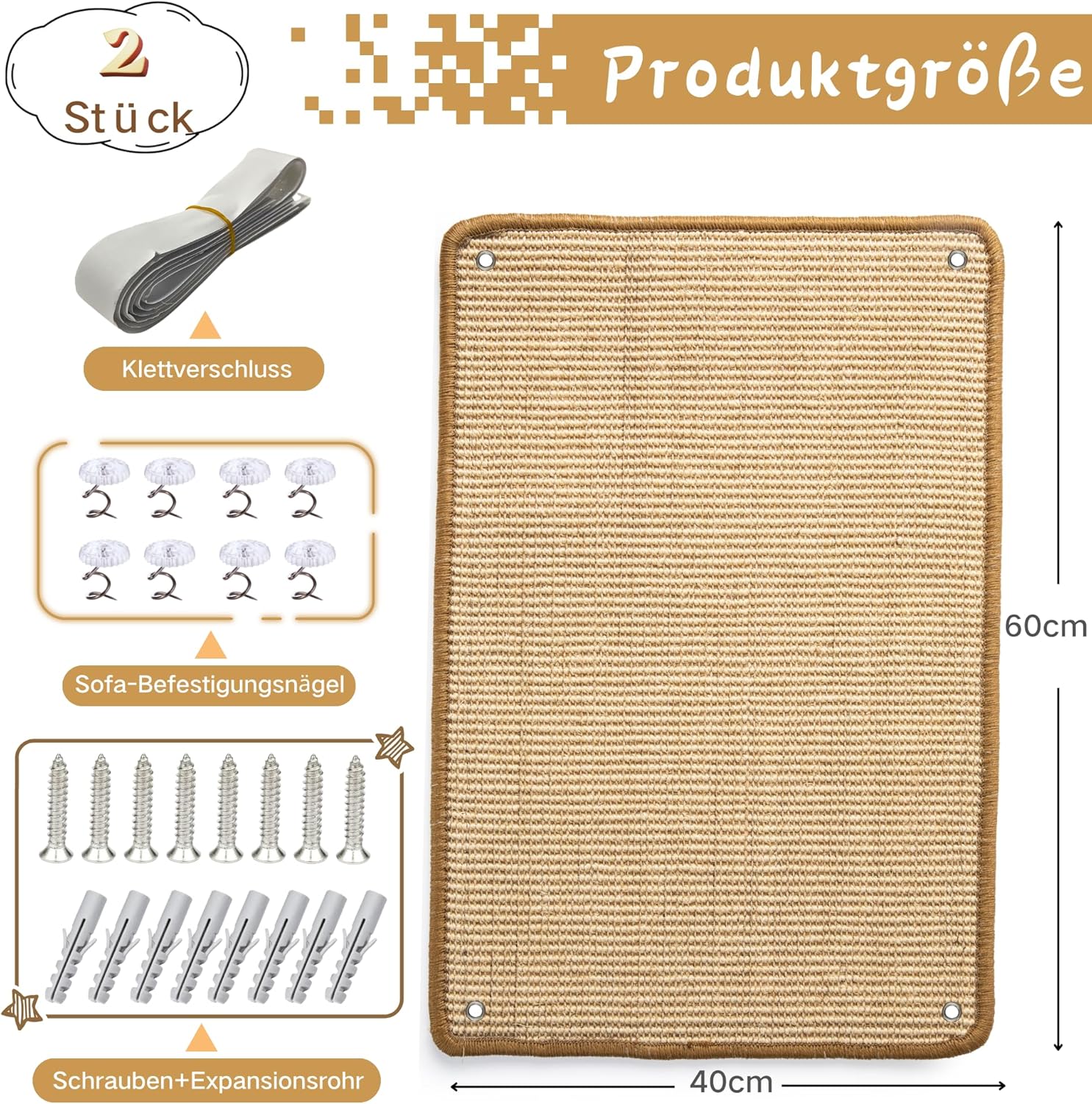 JanYoo Комплект от 2 подложки за драскане от котки, сизалова подложка за драскане от котки за котки, подложка за драскане от котки за диван, мебели, врата, защита от надраскване, 60 × 40 см, бежова