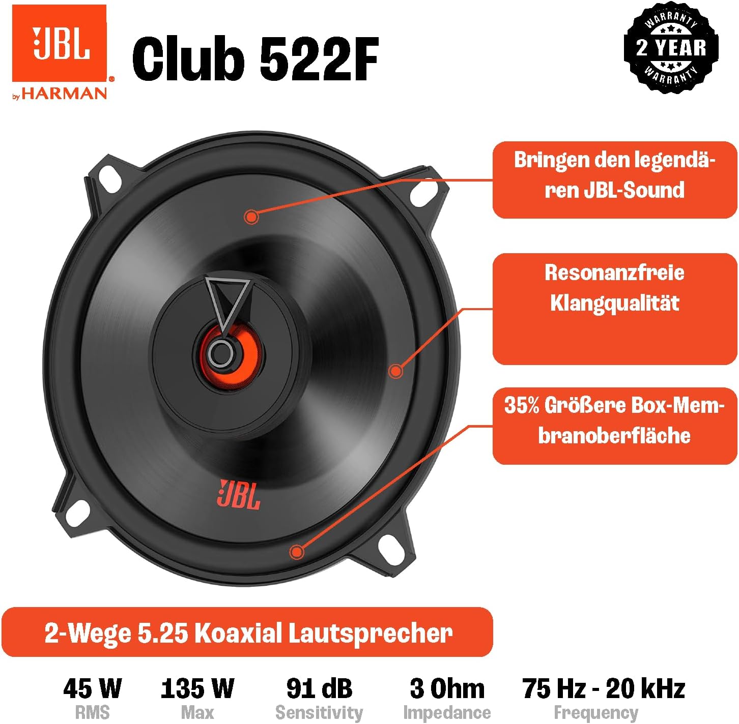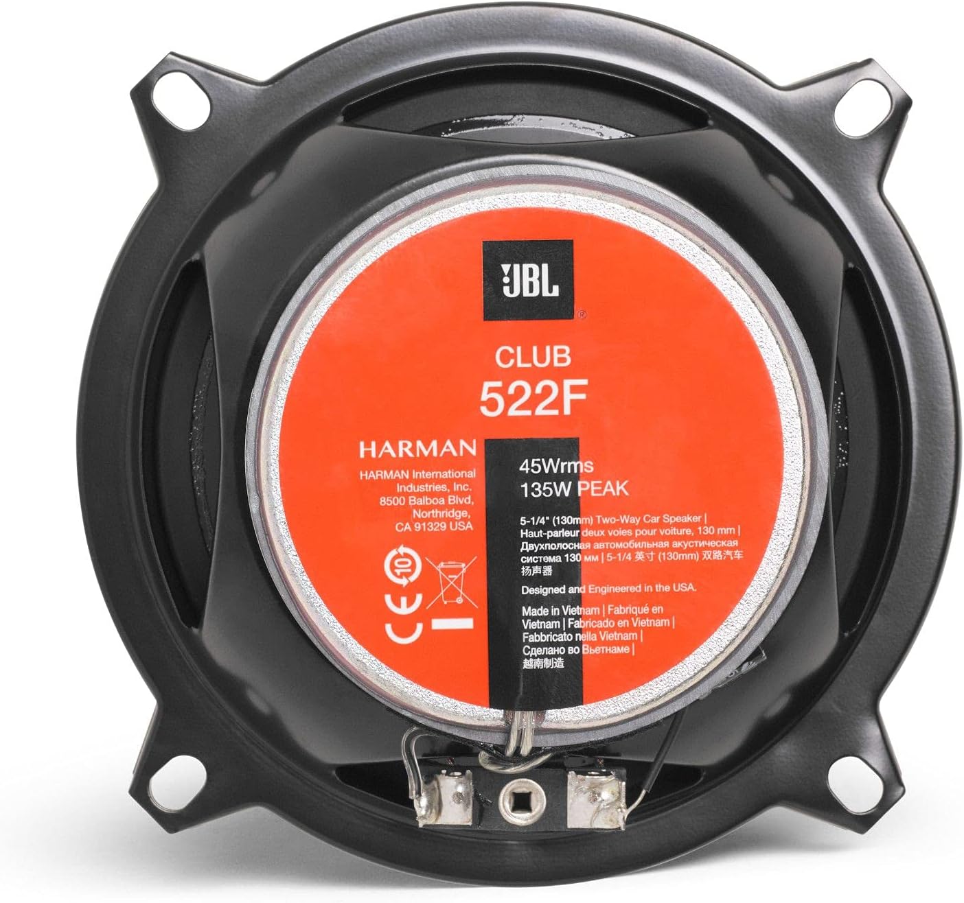 • Високоговорителите JBL Club 522F са високоефективни и мощни, осигуряват страхотен звук и са идеалното допълнение към всяка автомобилна Hi-Fi озвучителна система, дори и към фабрично инсталираните автомобилни стереоуредби с ниска мощност.