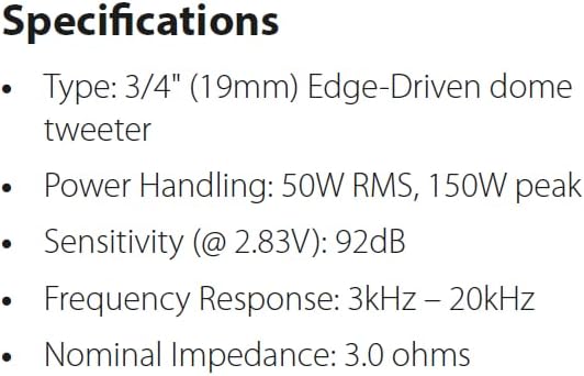 • Мощна производителност за вашия автомобил: С 50 вата RMS и 150 вата пикова мощност, тези JBL високочестотни говорители осигуряват отличен звук във високочестотния диапазон, дори с нискомощни фабрични автомобилни радиосистеми.