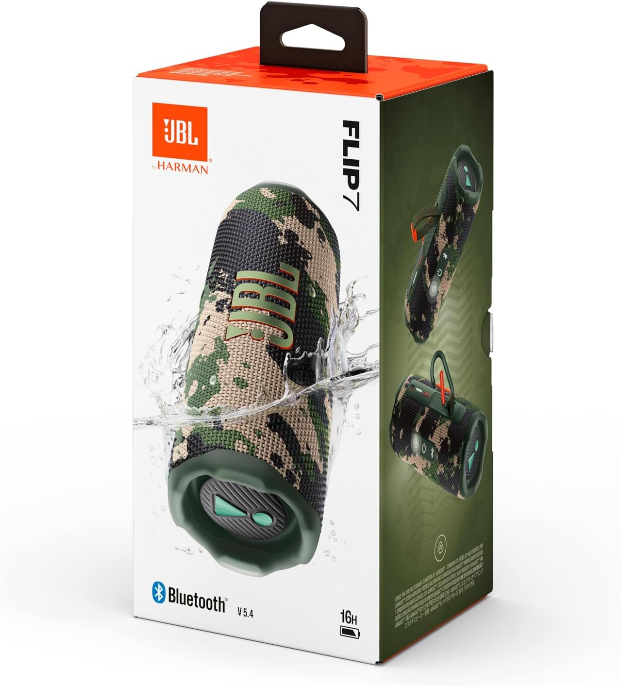 JBL Flip 7 Безжичен преносим Bluetooth високоговорител, 16 часа живот на батерията, IP68 водоустойчив, прахоустойчив и удароустойчив, професионален звук с AI Boost, Auracast връзка за множество високоговорители, Squad