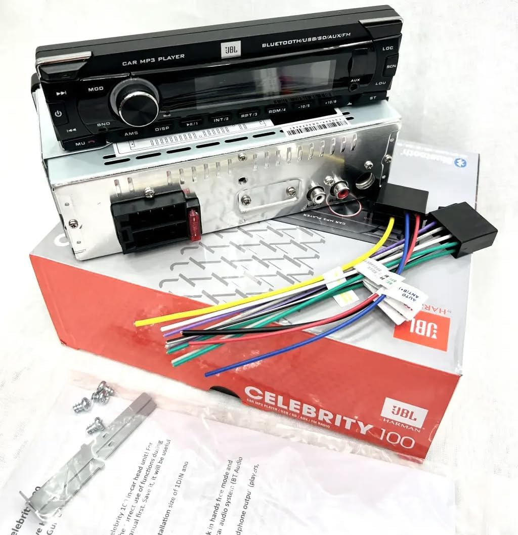 JBL Harman Kardon Celebrity 100 автомобилно радио Bluetooth 1 DIN 4 x 50 W безжично FM автомобилно радио с Bluetooth стрийминг и комплект за свободни ръце за кола с подвижен дисплей, USB, SD и AUX