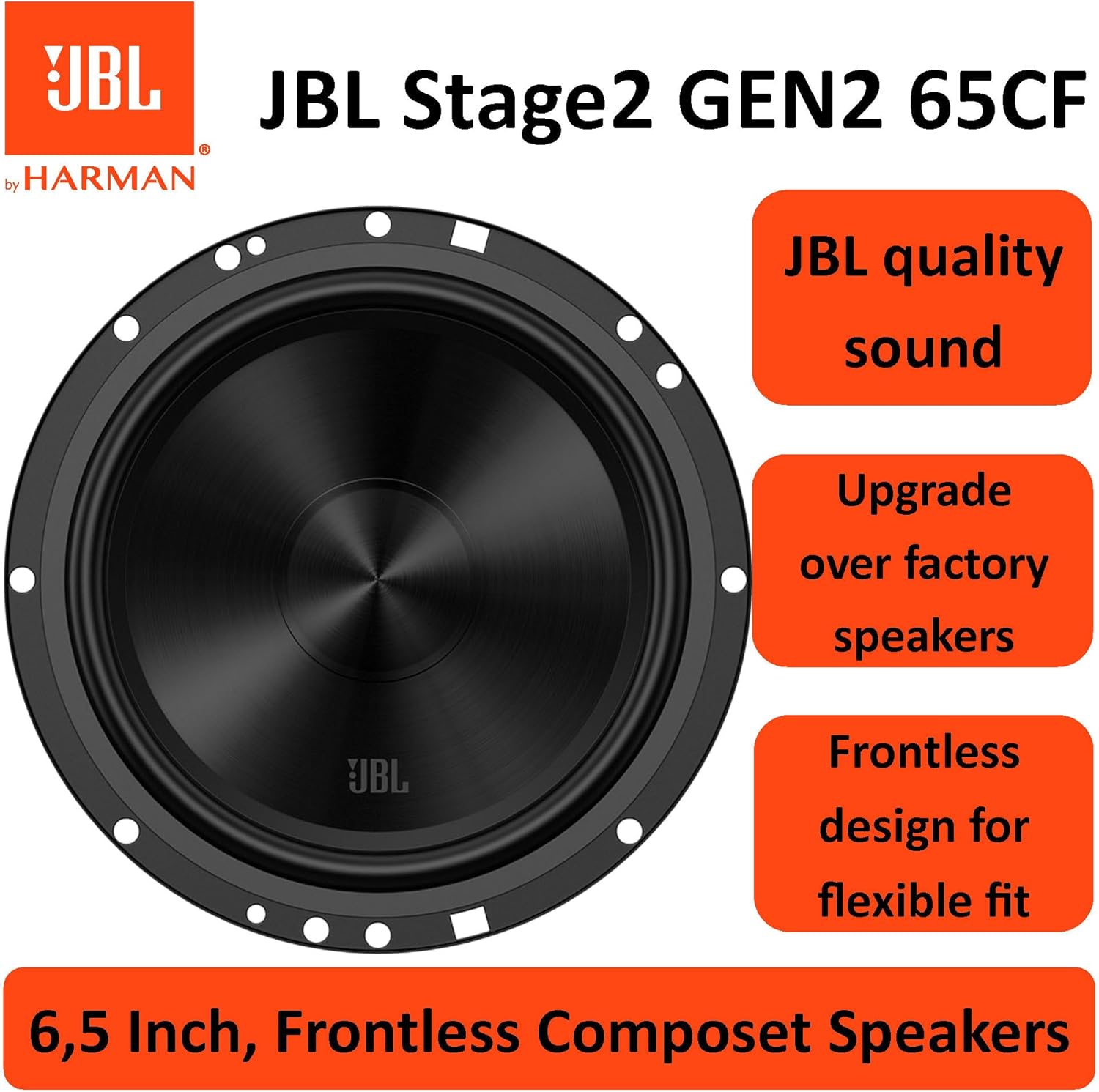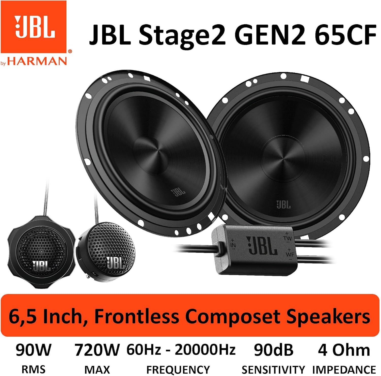 JBL Stage2 GEN2 65CF Компонентни автомобилни високоговорители 165 мм (6,5 инча): от Harman Kardon Car HiFi с 90W RMS и 720W Max Комплект компонентни автомобилни високоговорители 2 нискочестотни + 2 високочестотни високоговорителя
