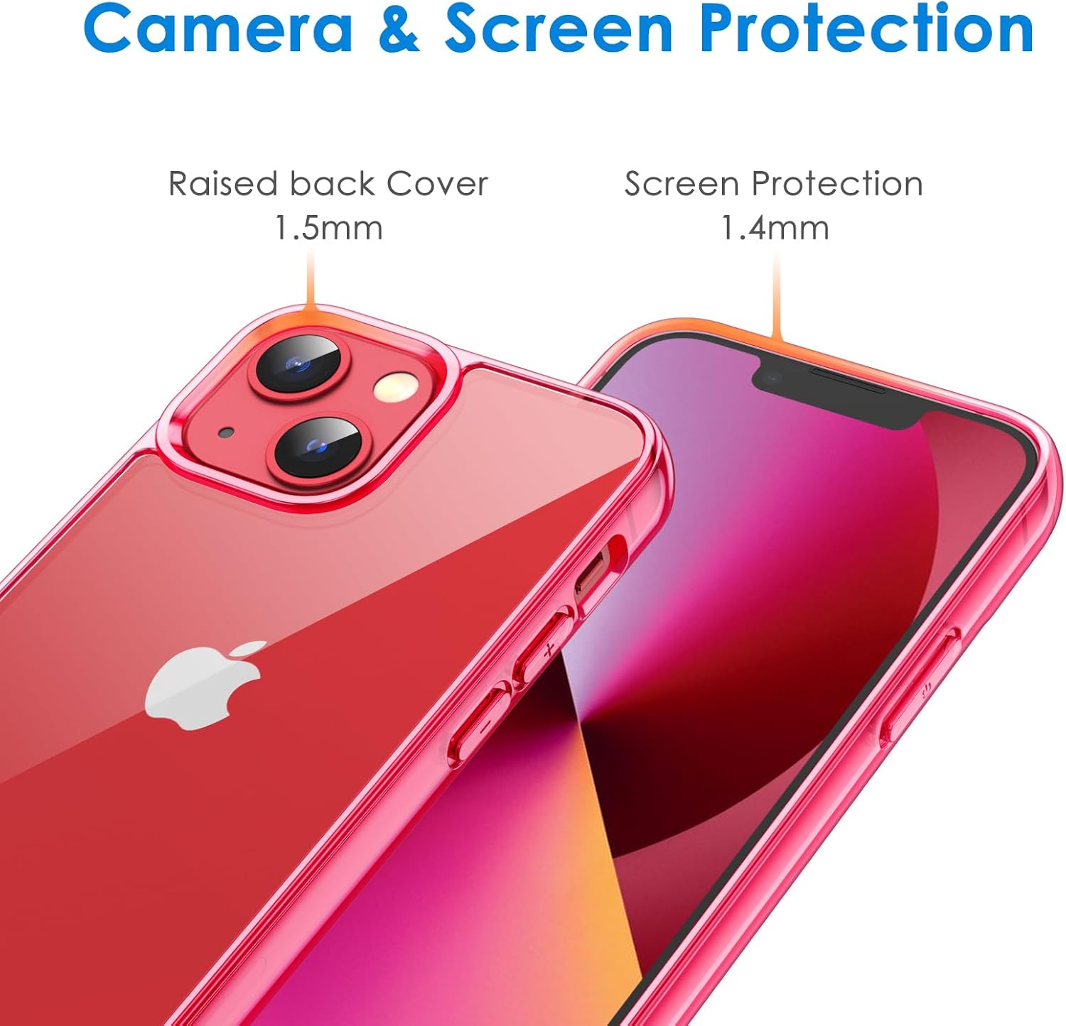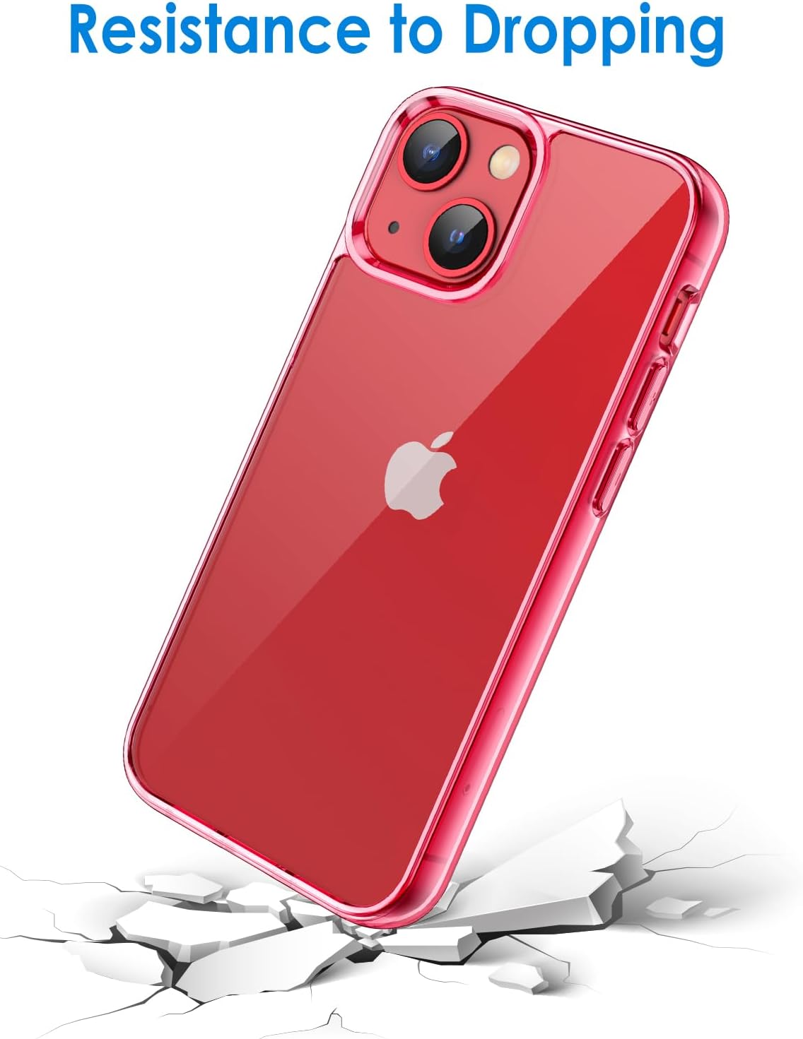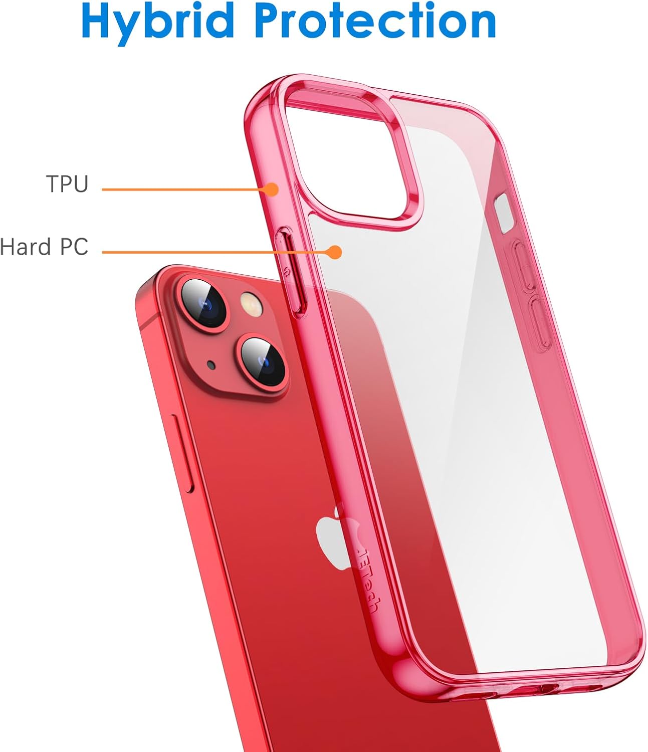 JETech калъф, съвместим с iPhone 13 6.1 инча, удароустойчив калъф за мобилен телефон тип „bumper“, прозрачен гръб, устойчив на надраскване (червен)