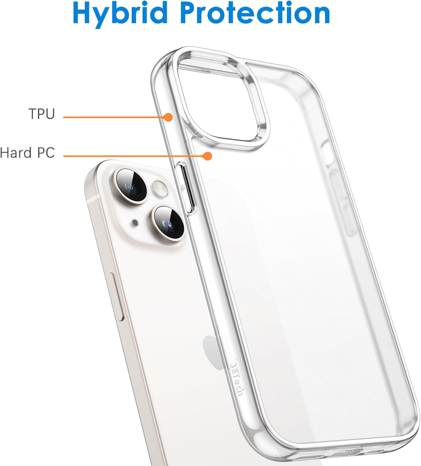 JETech калъф за iPhone 13 6.1 инча, непожълтяващ удароустойчив калъф тип „bumper“ за мобилен телефон, устойчив на надраскване и пръстови отпечатъци, матов гръб (прозрачен)