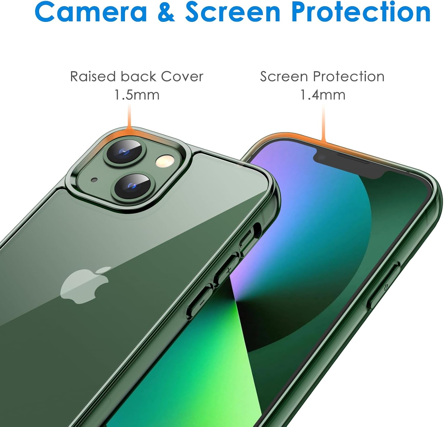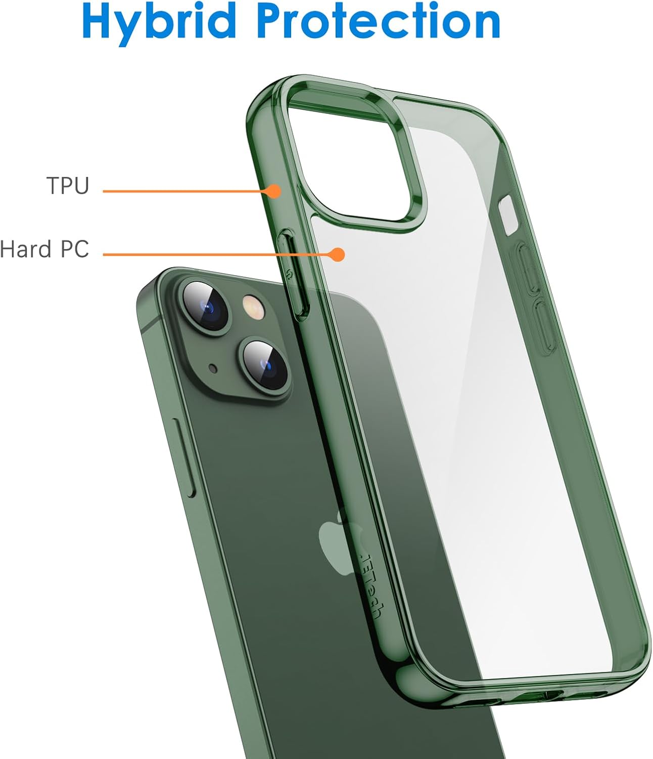 JETech калъф за iPhone 13 6.1 инча, никога пожълтяващ, удароустойчив калъф за мобилен телефон, прозрачен гръб, устойчив на надраскване (алпийско зелено)