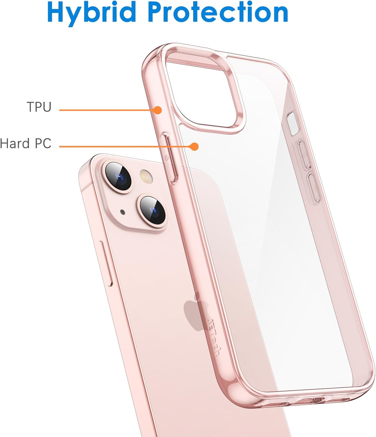 JETech калъф за iPhone 13 6.1 инча, никога пожълтяващ, удароустойчив калъф за мобилен телефон, прозрачен гръб, устойчив на надраскване (розов)
