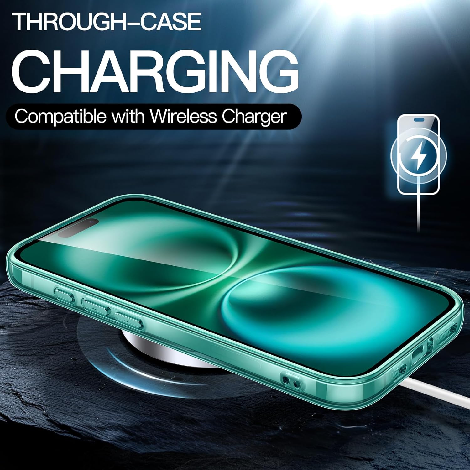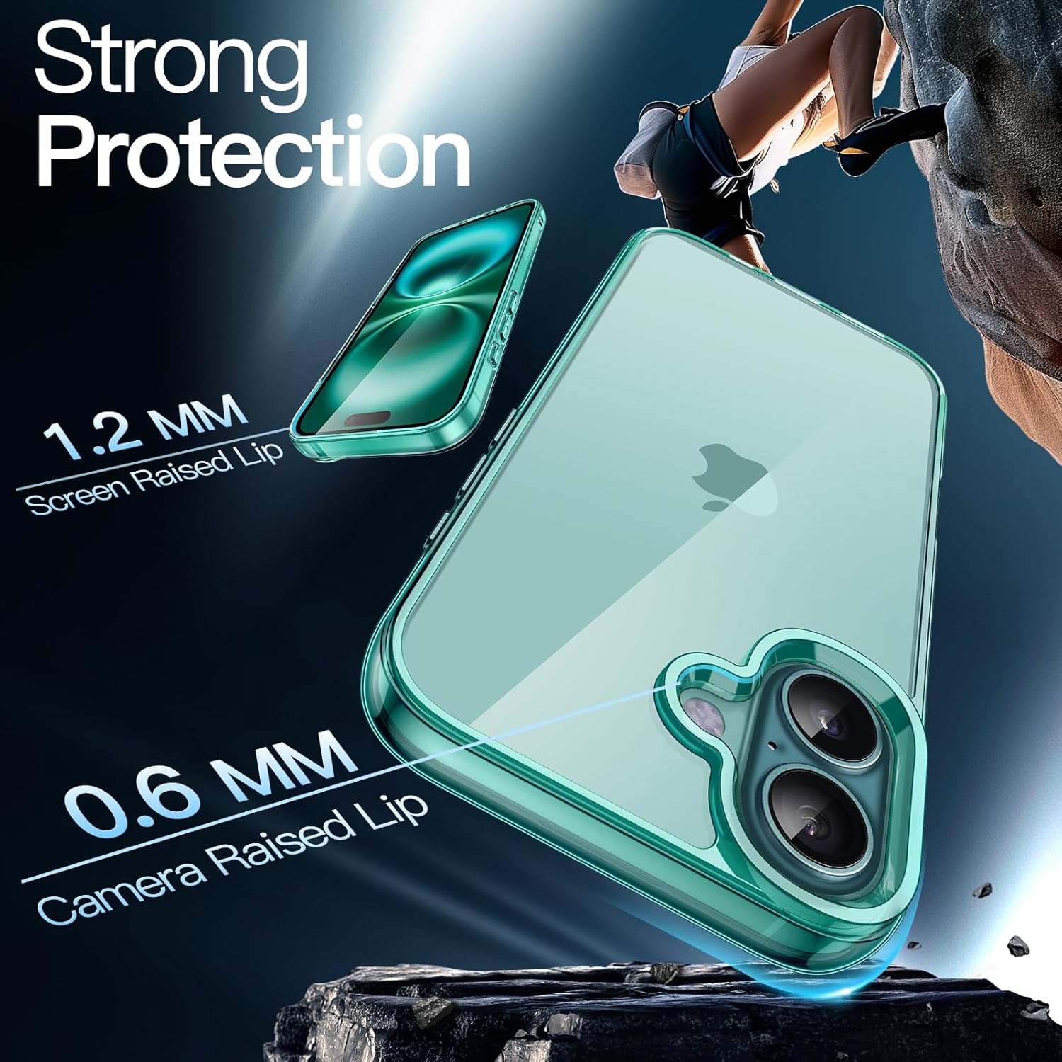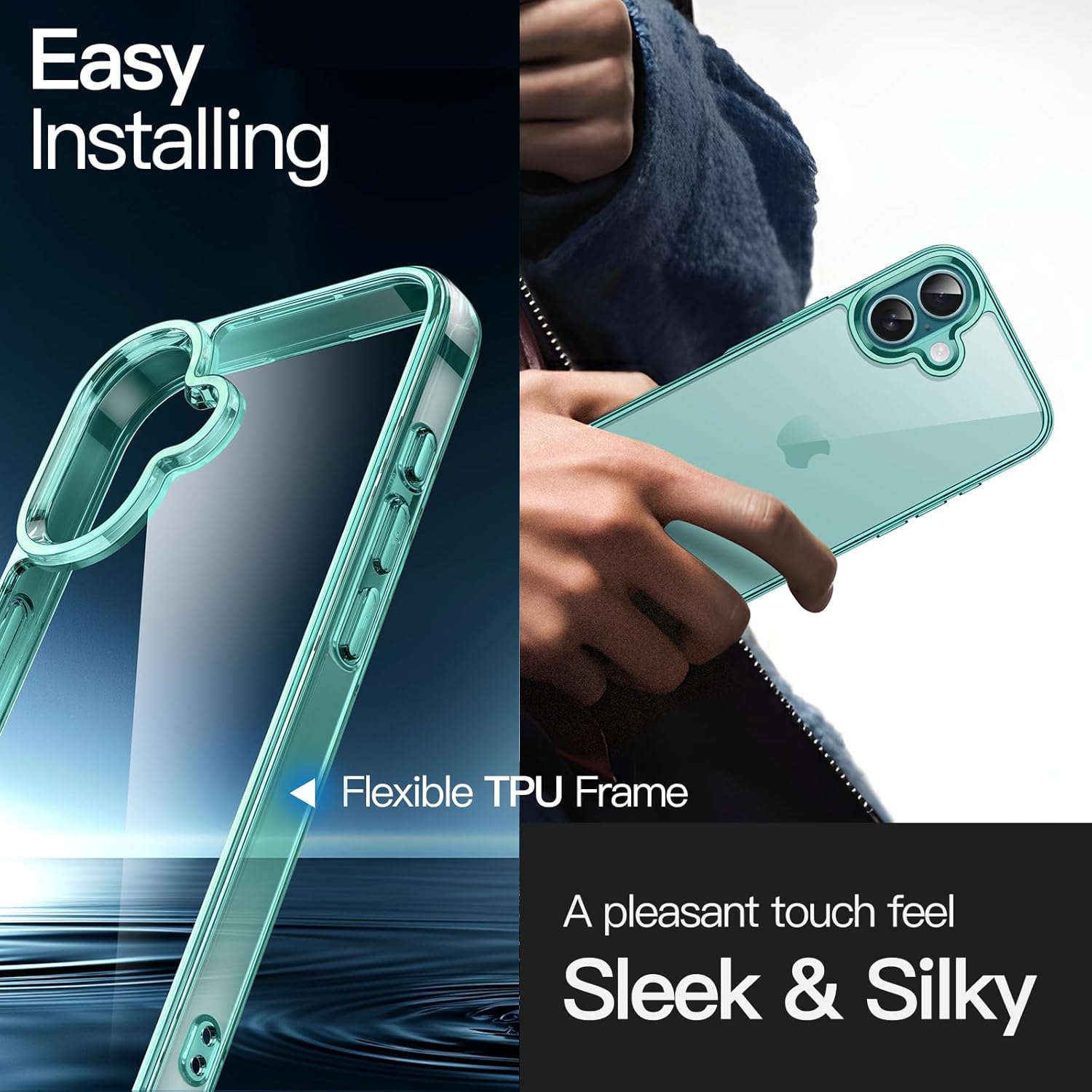 JETech калъф за iPhone 16 6.1 инча, непожълтяващ удароустойчив калъф тип „bumper“ за мобилен телефон, прозрачен гръб, устойчив на надраскване (синьозелен)