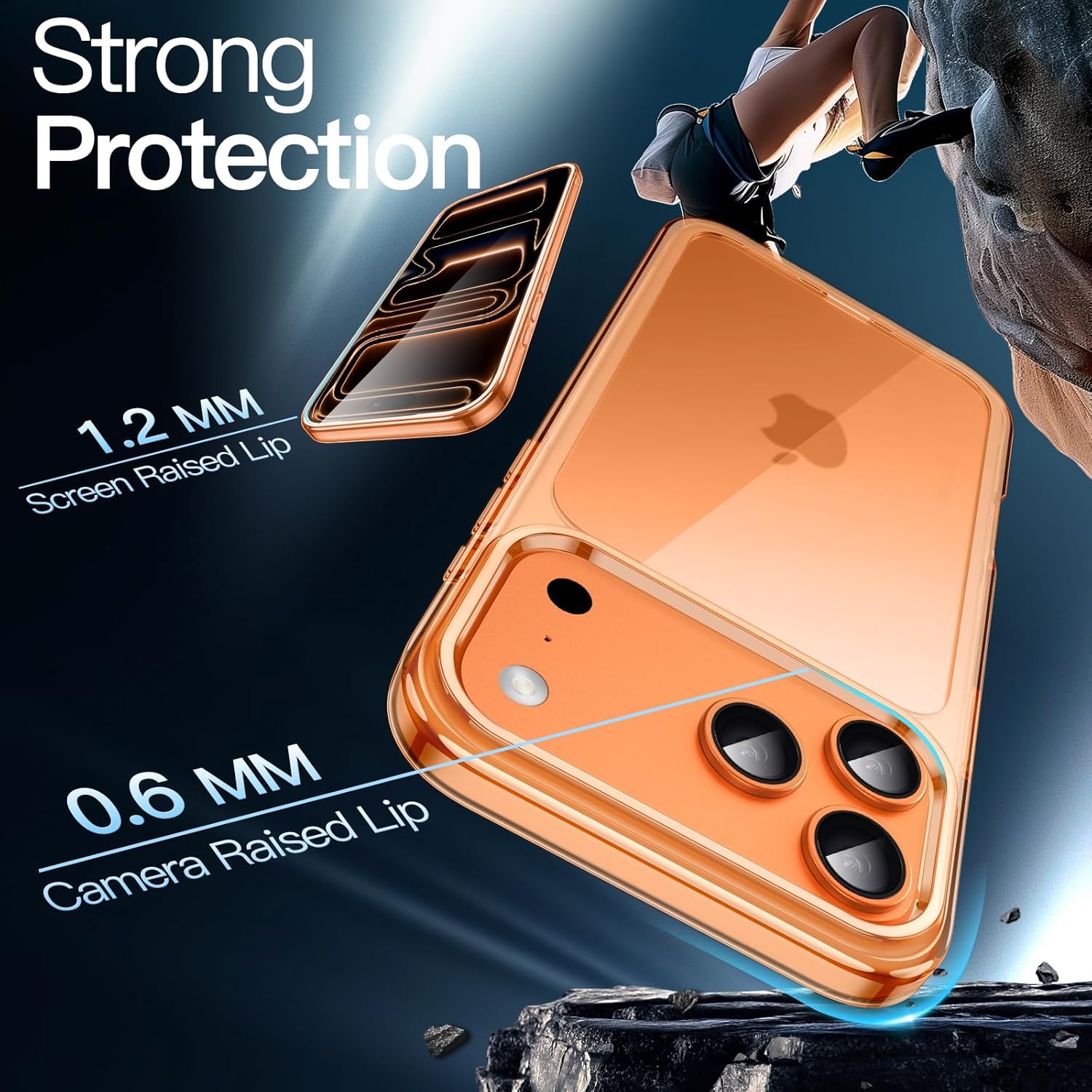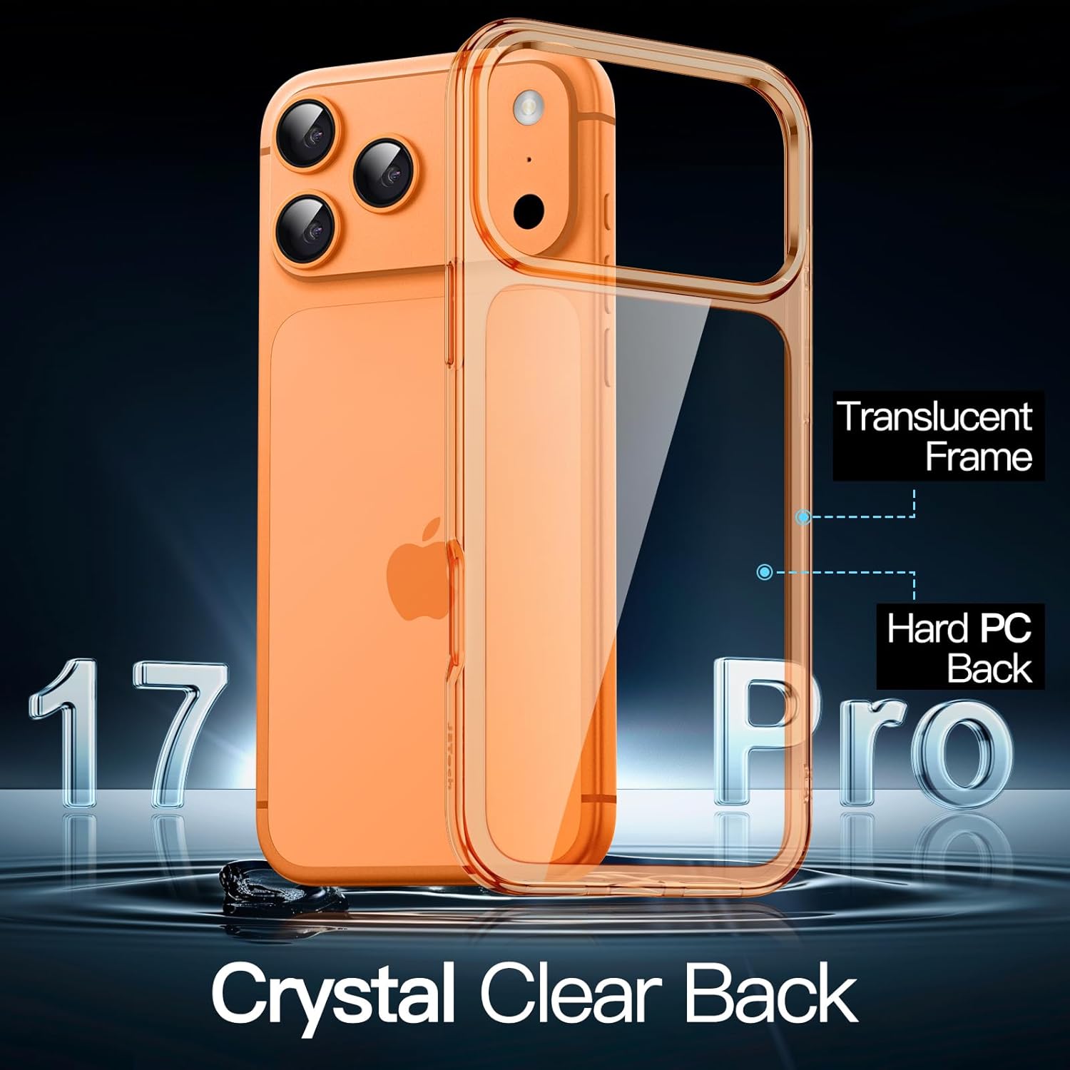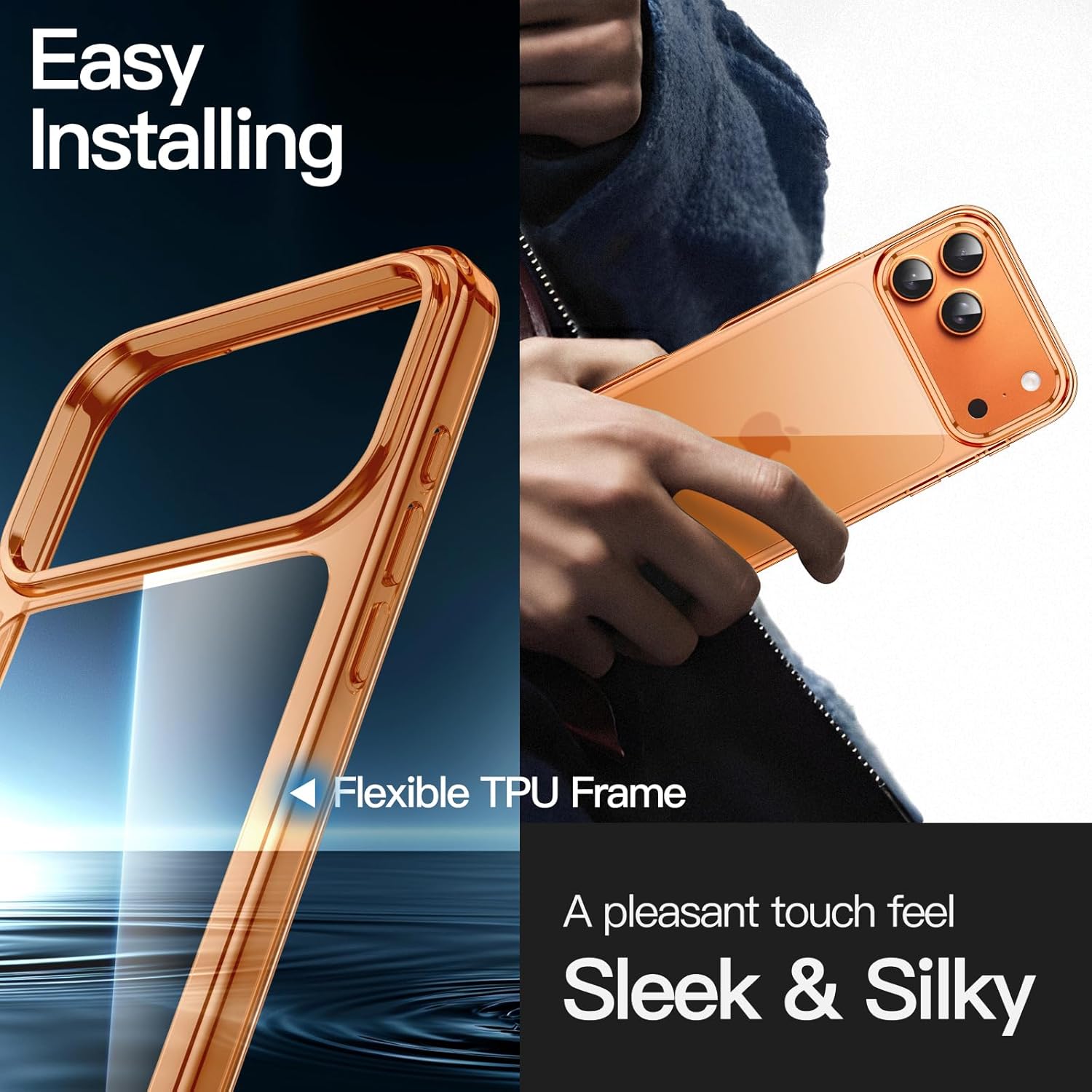 JETech калъф за iPhone 17 Pro 6.3 инча, непожълтяващ удароустойчив калъф тип „bumper“ за мобилен телефон, прозрачен гръб, устойчив на надраскване (оранжев)
