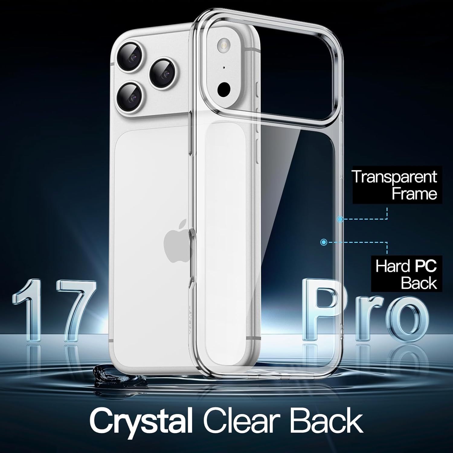JETech калъф за iPhone 17 Pro 6.3 инча, удароустойчив калъф за мобилен телефон, който не пожълтява, прозрачен гръб, устойчив на надраскване