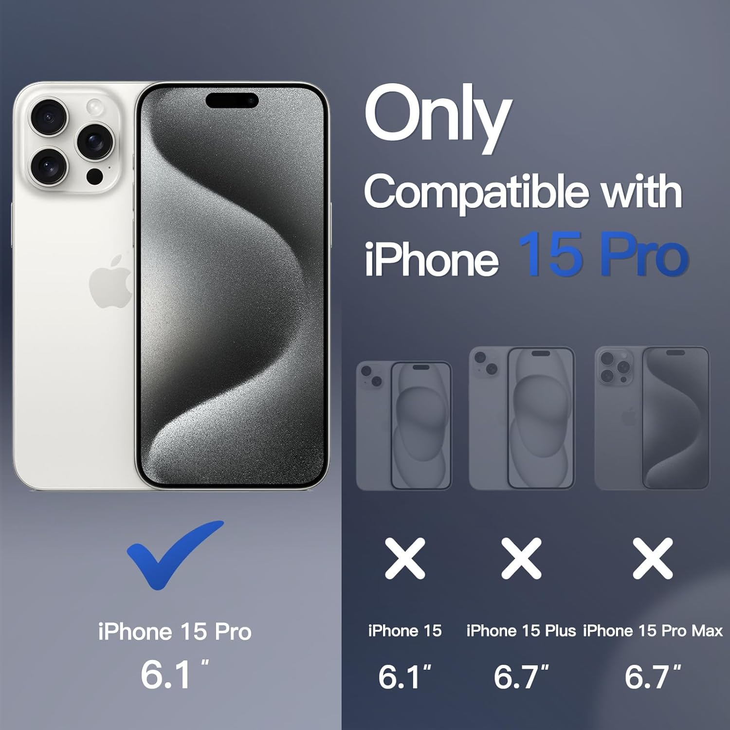 • Перфектно прилягане: Перфектен дизайн за iPhone 15 Pro 6.1 инча, без телефонът ви да изглежда обемист. Забележка: Не е за iPhone 15/15 Plus/15 Pro Max. Перфектно подравнените изрези позволяват пълен достъп до камерата, високоговорителите, бутоните и други портове.
