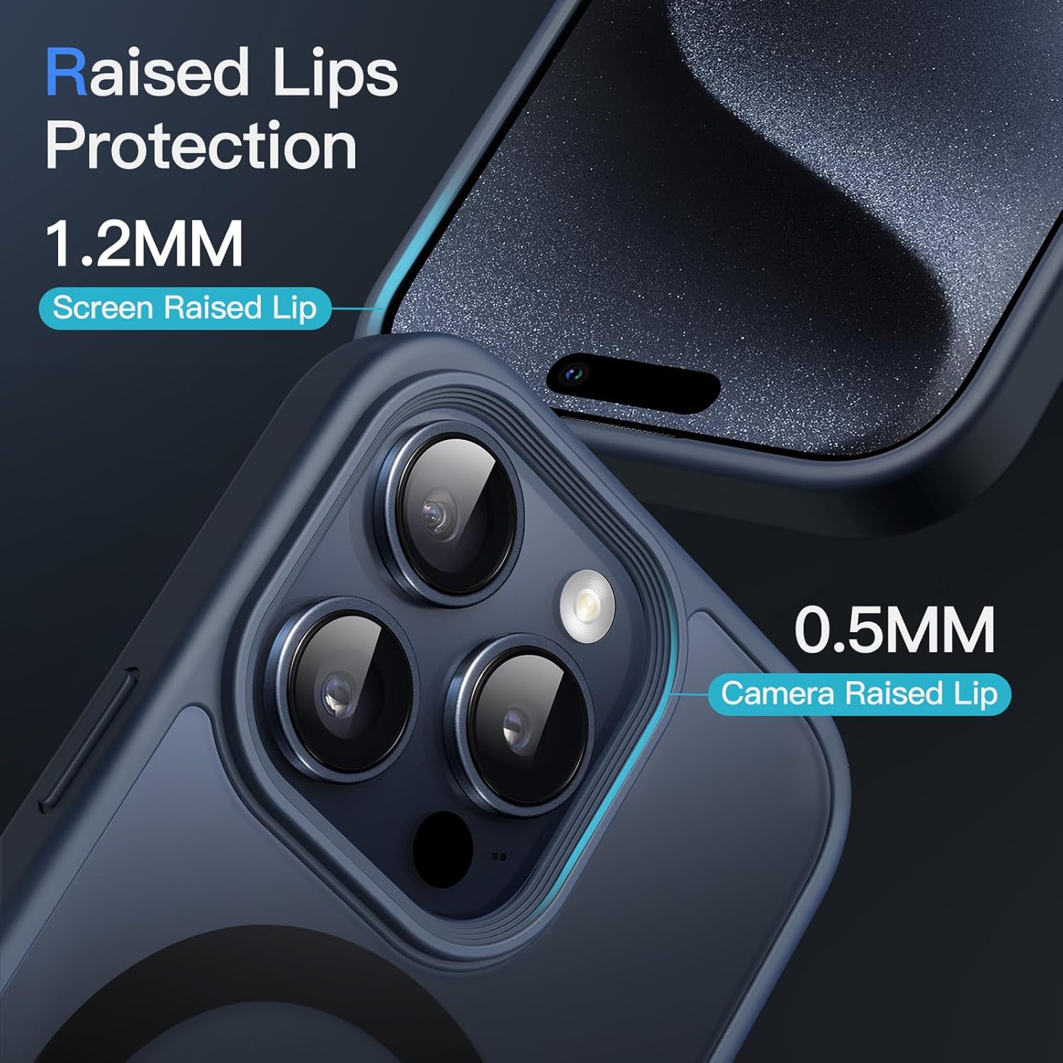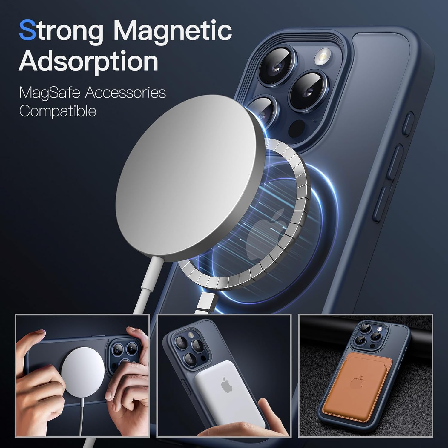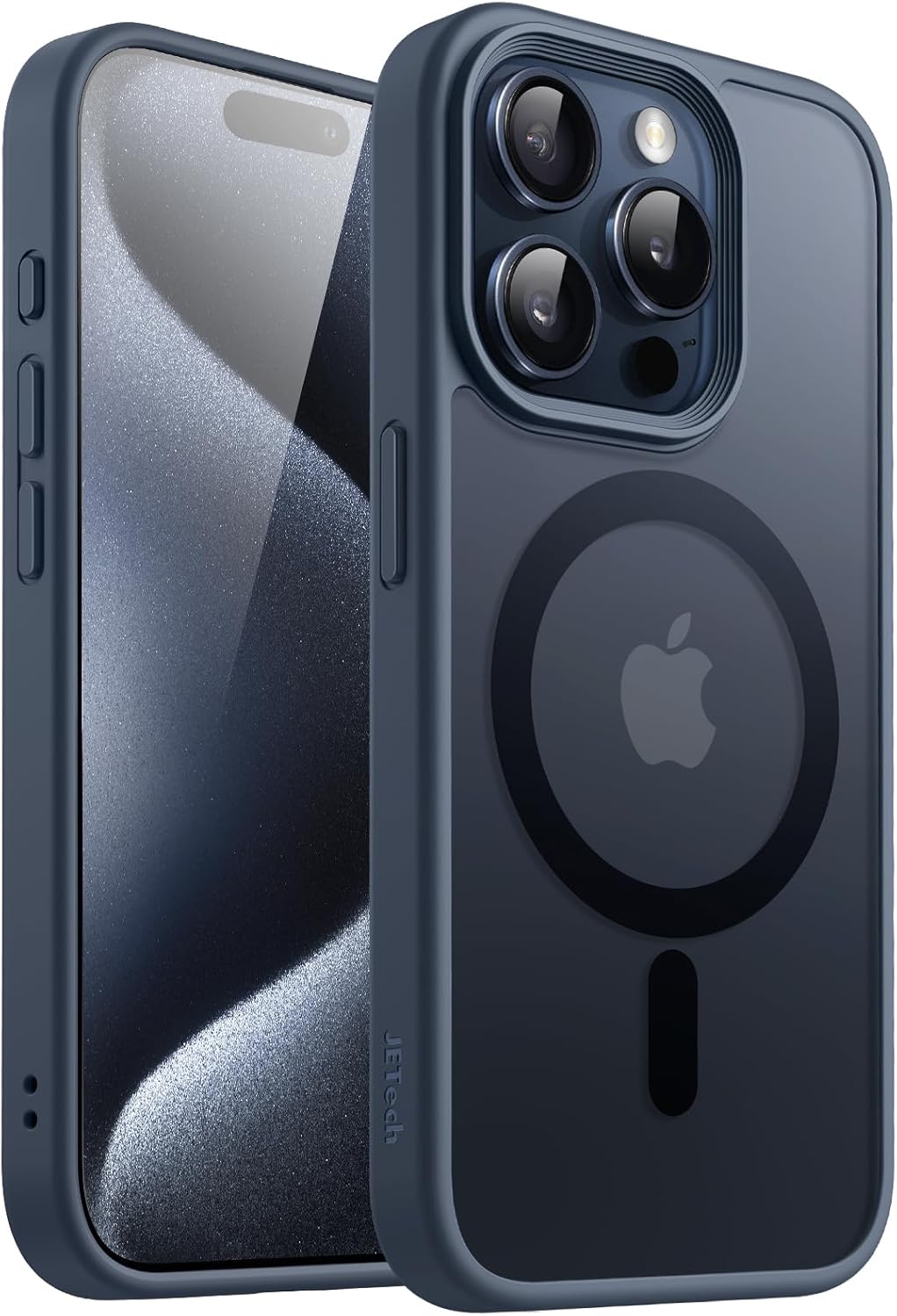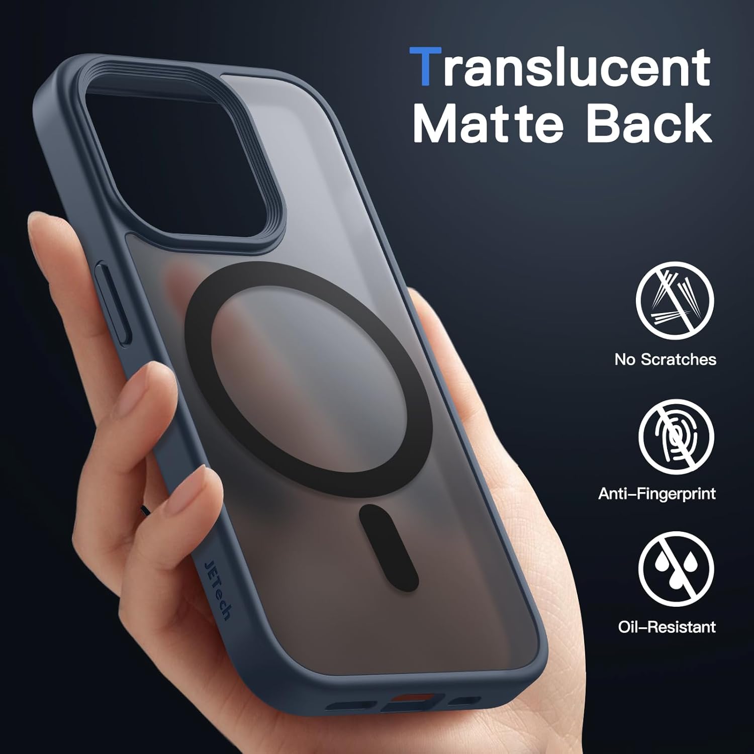 JETech Магнитен Калъф за iPhone 15 Pro 6.1 инча, Съвместим с MagSafe, Прозрачен Матов Калъф за Мобилен Телефон, Тънък Удароустойчив Защитен Калъф (Син)