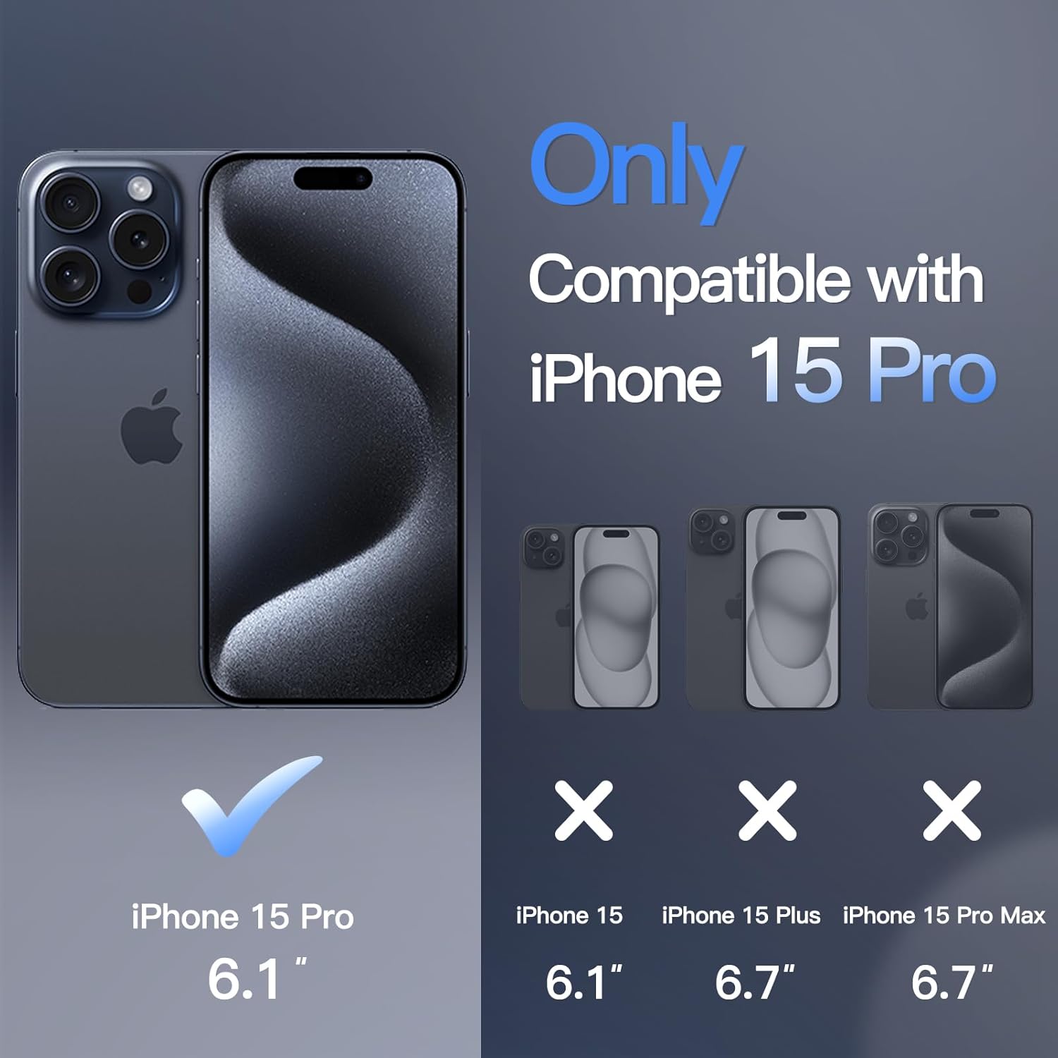 • Перфектно прилягане: Перфектен дизайн за iPhone 15 Pro 6.1 инча, без телефонът ви да изглежда обемист. Забележка: Не е за iPhone 15/15 Plus/15 Pro Max. Перфектно подравнените изрези позволяват пълен достъп до камерата, високоговорителите, бутоните и други портове.
