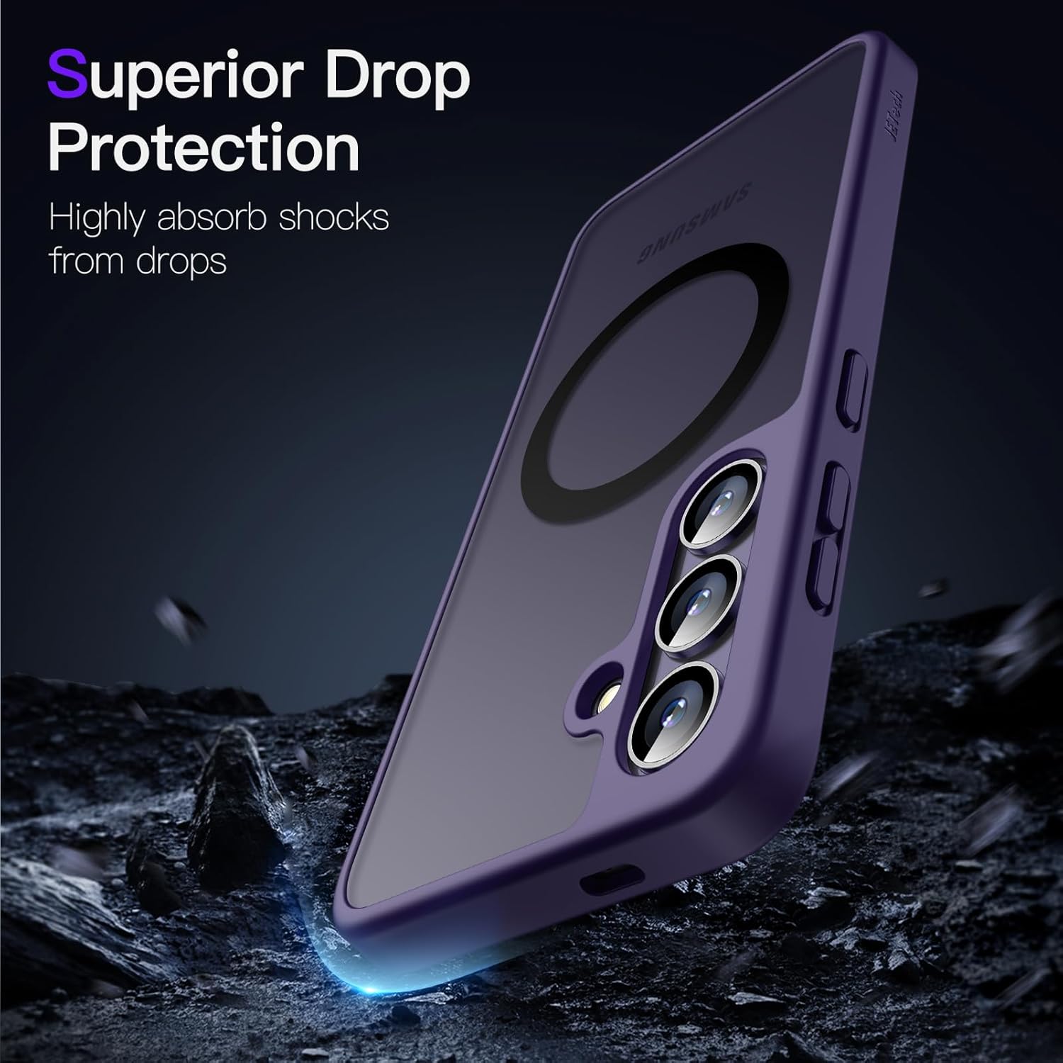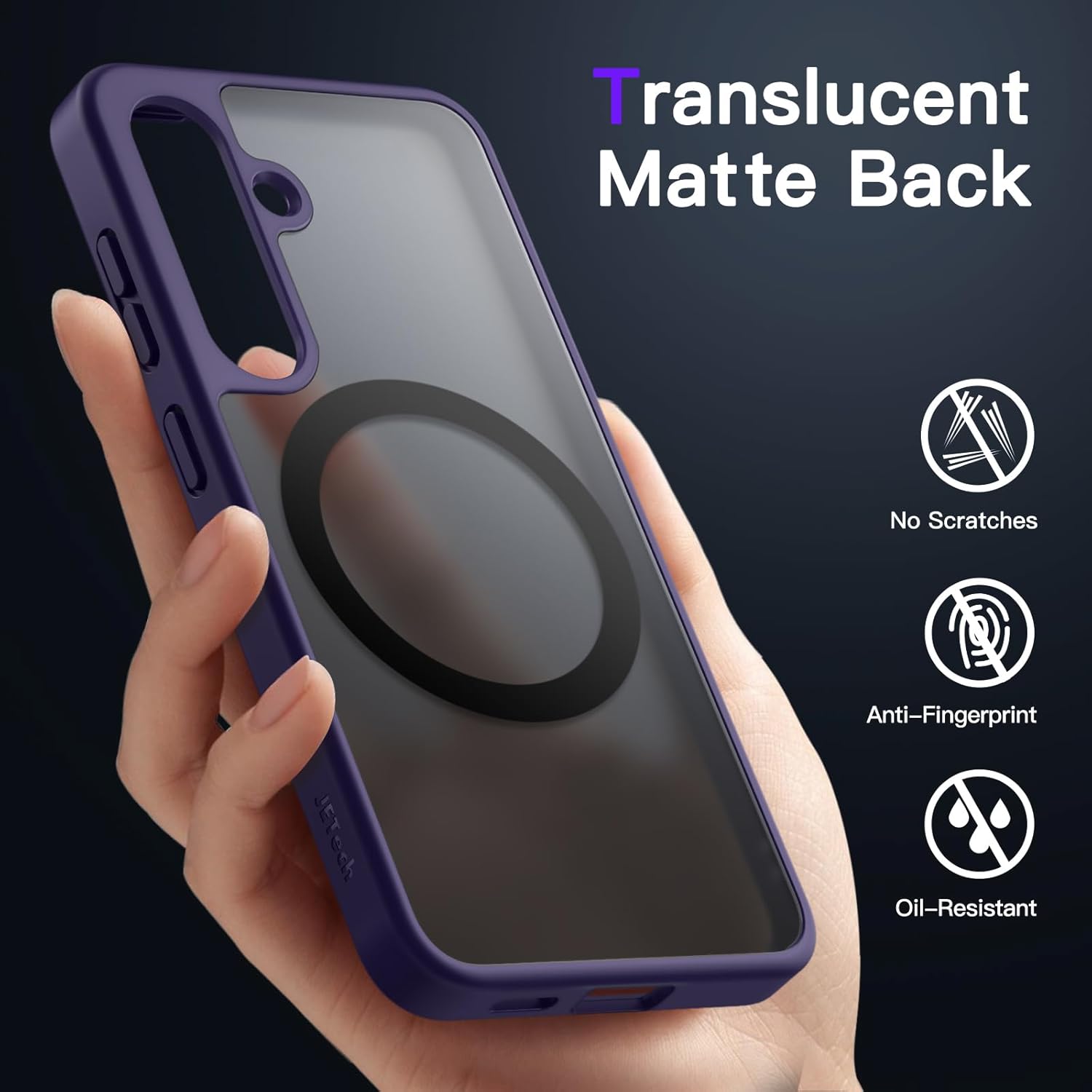 JETech Магнитен калъф за Samsung Galaxy S24+ / S24 Plus 5G, Съвместим с MagSafe, Прозрачен матов гръб, Удароустойчив калъф за мобилен телефон (Кобалтово лилав)